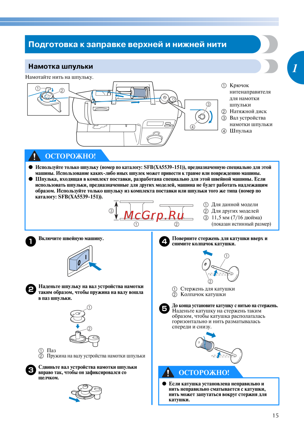 образом. Используйте только шпульку из комплекта поставки или шпульки того же типа (номер по