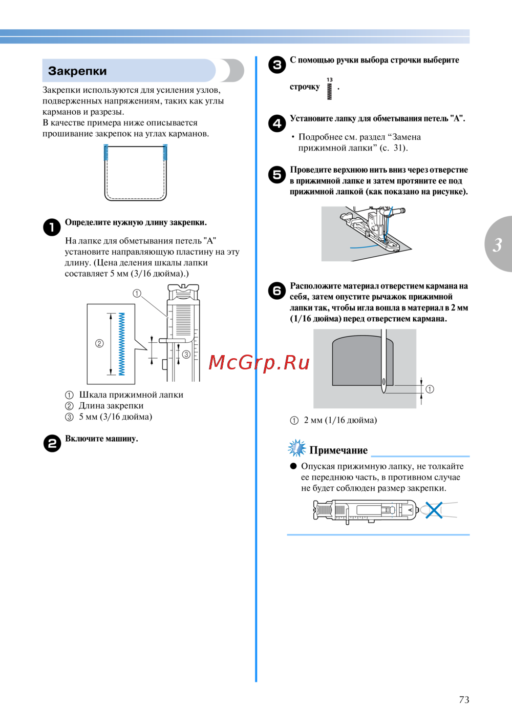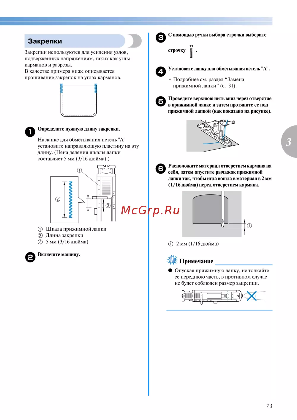 Узнайте, как правильно использовать закрепки для усиления узлов и карманов. Подробные инструкции по прошиванию и настройке длины закрепки.