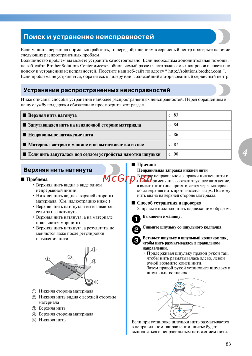 Brother INNOV-IS 10 A — поиск и устранение неисправностей швейной машины [85]