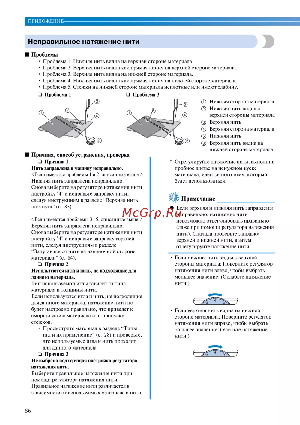 - Неправильное натяжение нити p.85