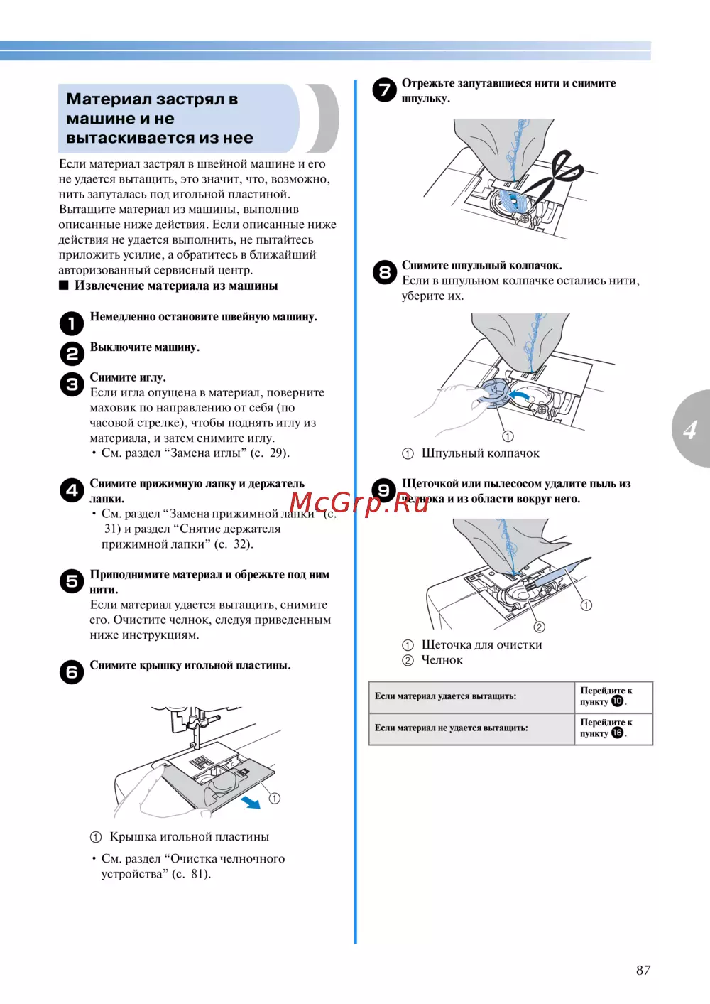 - Материал застрял в машине и не вытаскивается из нее p.85