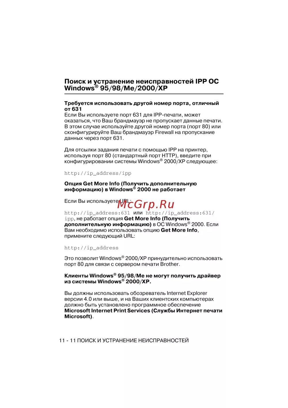 - Поиск и устранение неисправностей ipp ос windows 95 98 me 2000 xp p.147