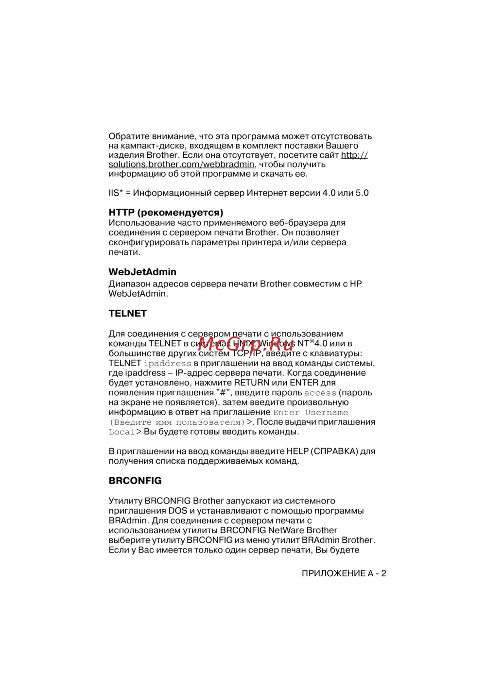 - Поиск и устранение неисправностей интернет печати в программе brother internet print tcp ip p.146