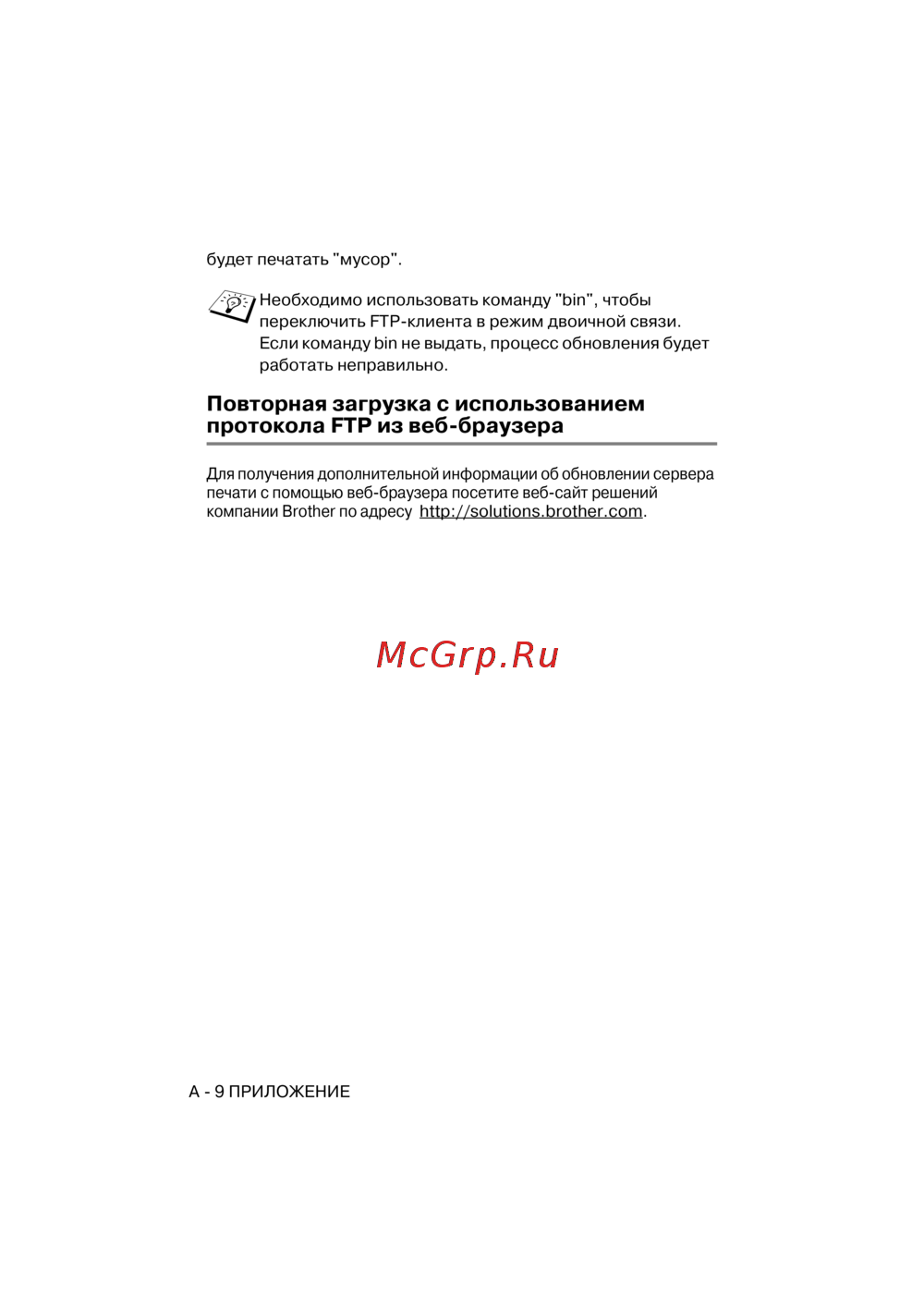 ![Brother NC-6100h [159/162] Повторная загрузка с использованием протокола ftp из веб браузера](/views2/1027425/page159/bg9f.png)
