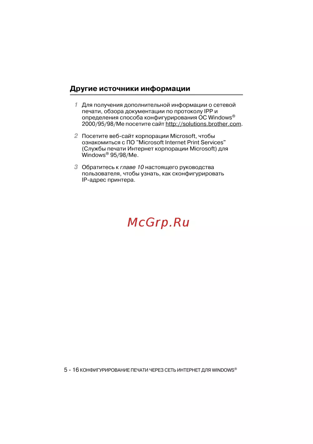 - Поиск и устранение неисправностей интернет печати в программе brother internet print tcp ip p.146