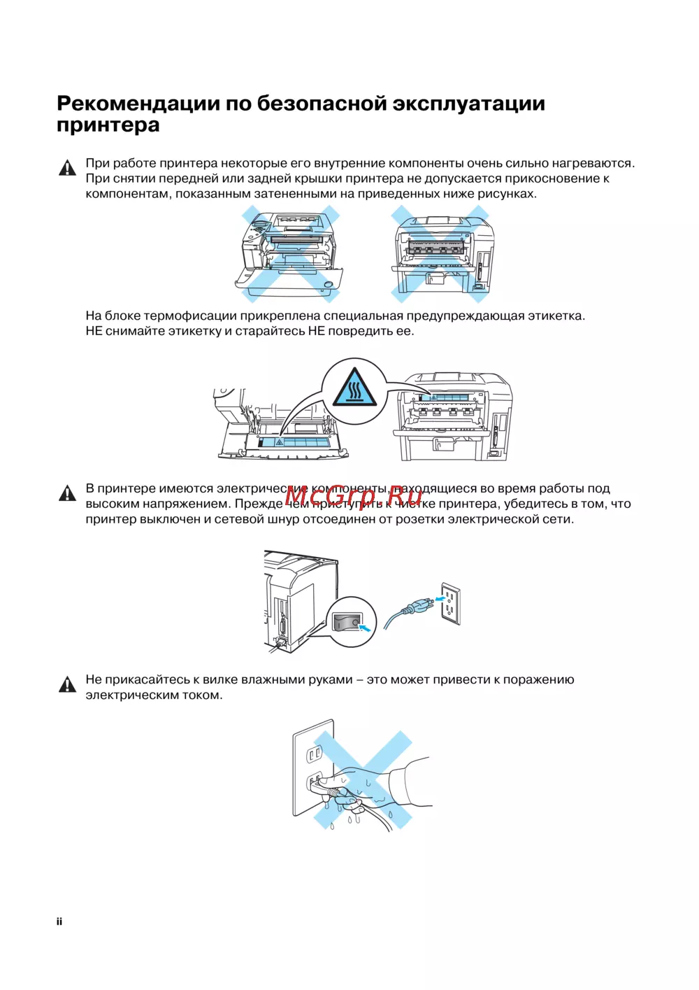 - Рекомендации по безопасной эксплуатации принтера p.3
