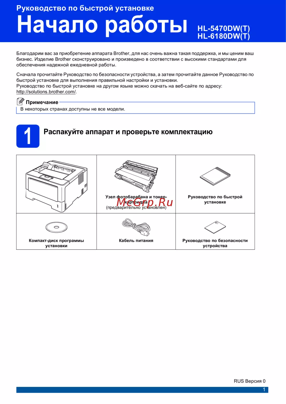 - Руководство по быстрой установке hl 5470dw t hl 6180dw t p.1