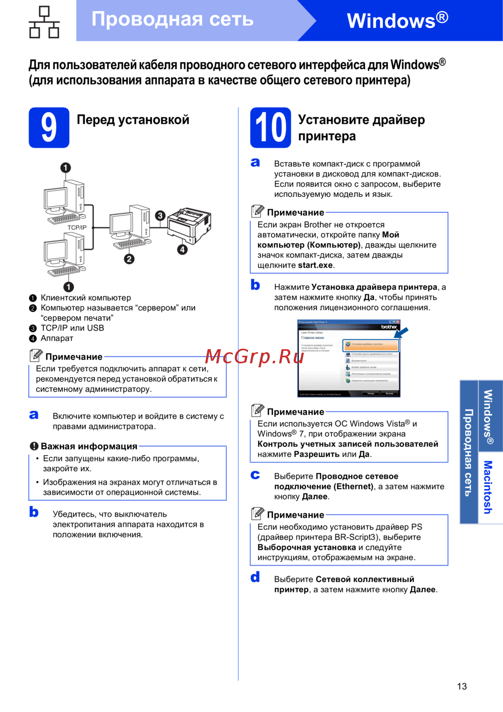 Brother HL-5470DW — установка драйвера принтера для проводной сети Windows и Macintosh [13]