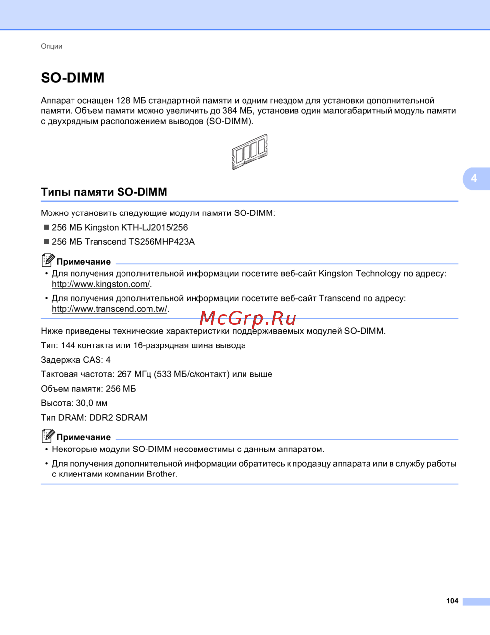 • Некоторые модули SO-DIMM несовместимы с данным аппаратом.