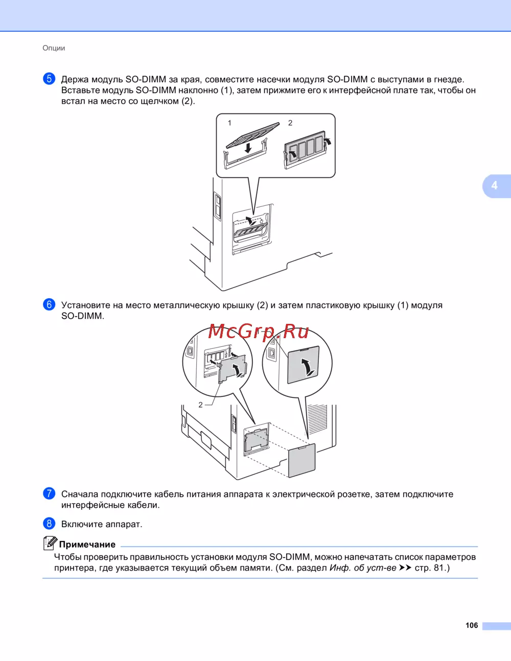 принтера, где указывается текущий объем памяти. (См. раздел Инф. об уст-ве uu стp. 81.)
