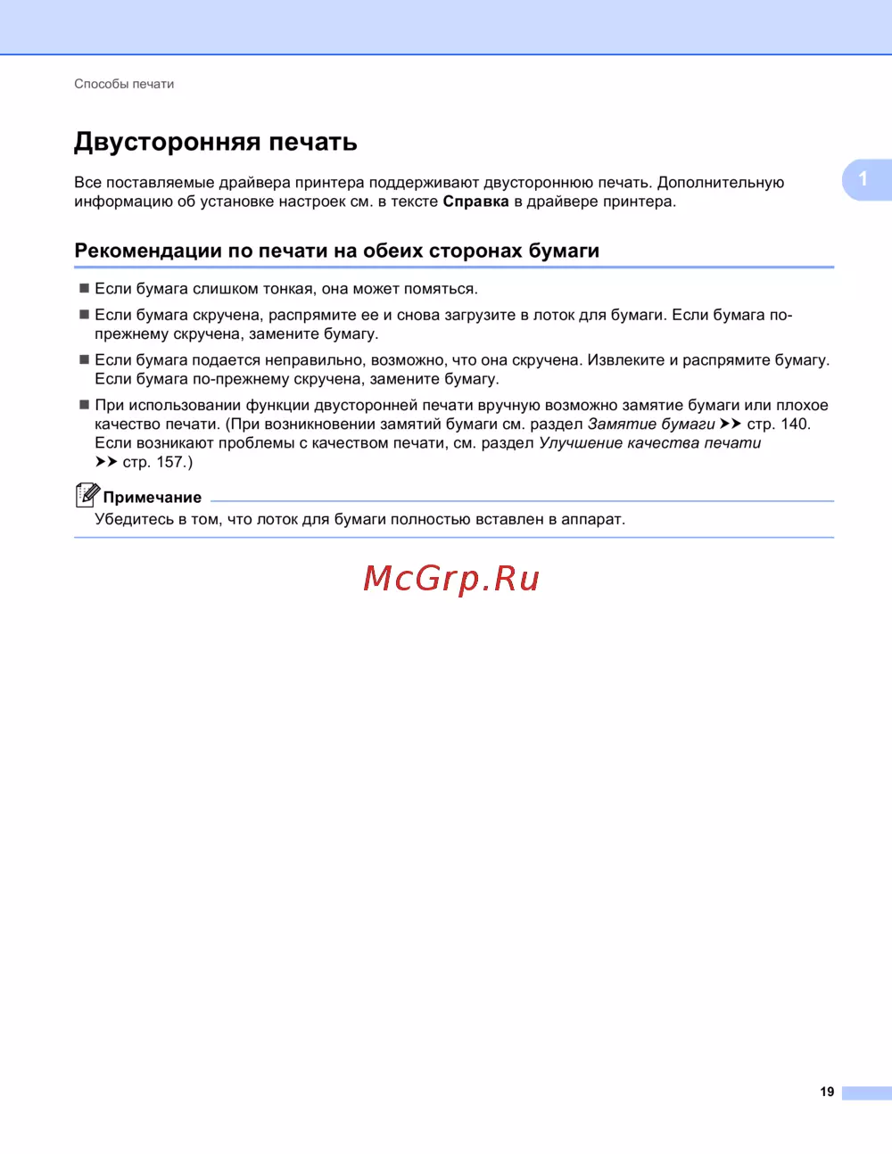 - Печать на обычной бумаге тонкой бумаге или бумаге из вторсырья из лотка 1 и лотка p.15