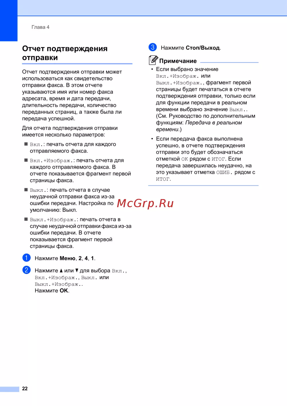 Brother FAX-2845R — отчет подтверждения отправки факса: параметры и настройки [30]