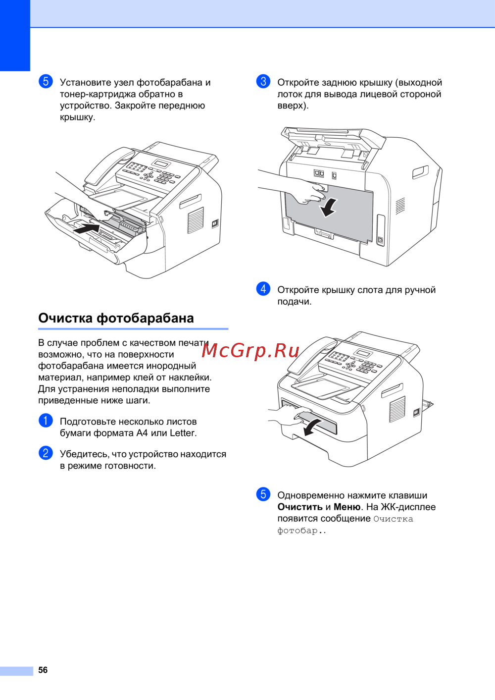 Brother FAX-2845R — инструкция по очистке фотобарабана и замене тонера [64]