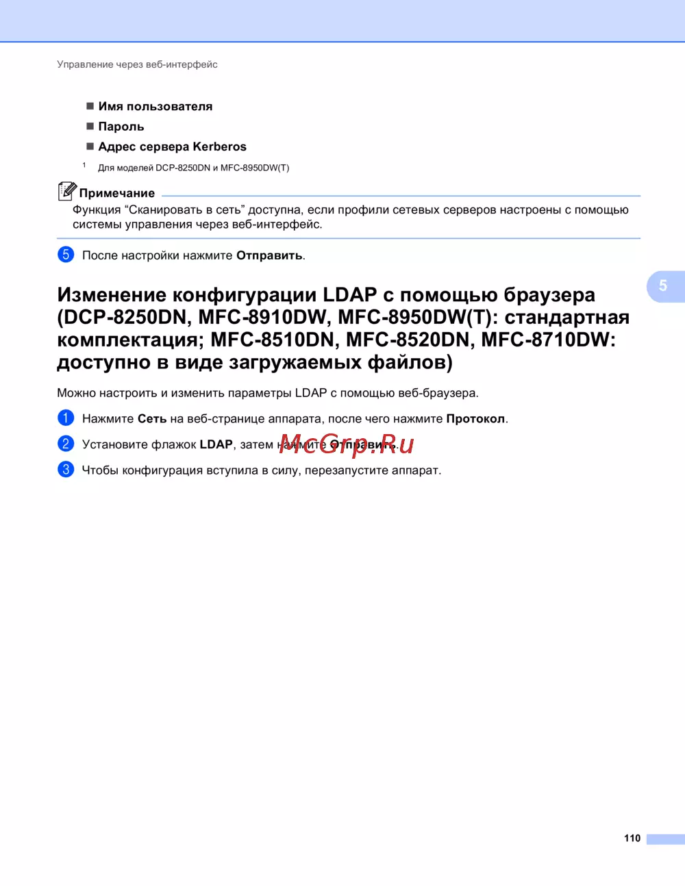 - Работа с ldap dcp 8250dn mfc 8910dw mfc 8950dw t стандартная комплектация mfc 8510dn mfc 8520dn mfc 8710dw доступно в виде загружаемых файлов 112 p.5