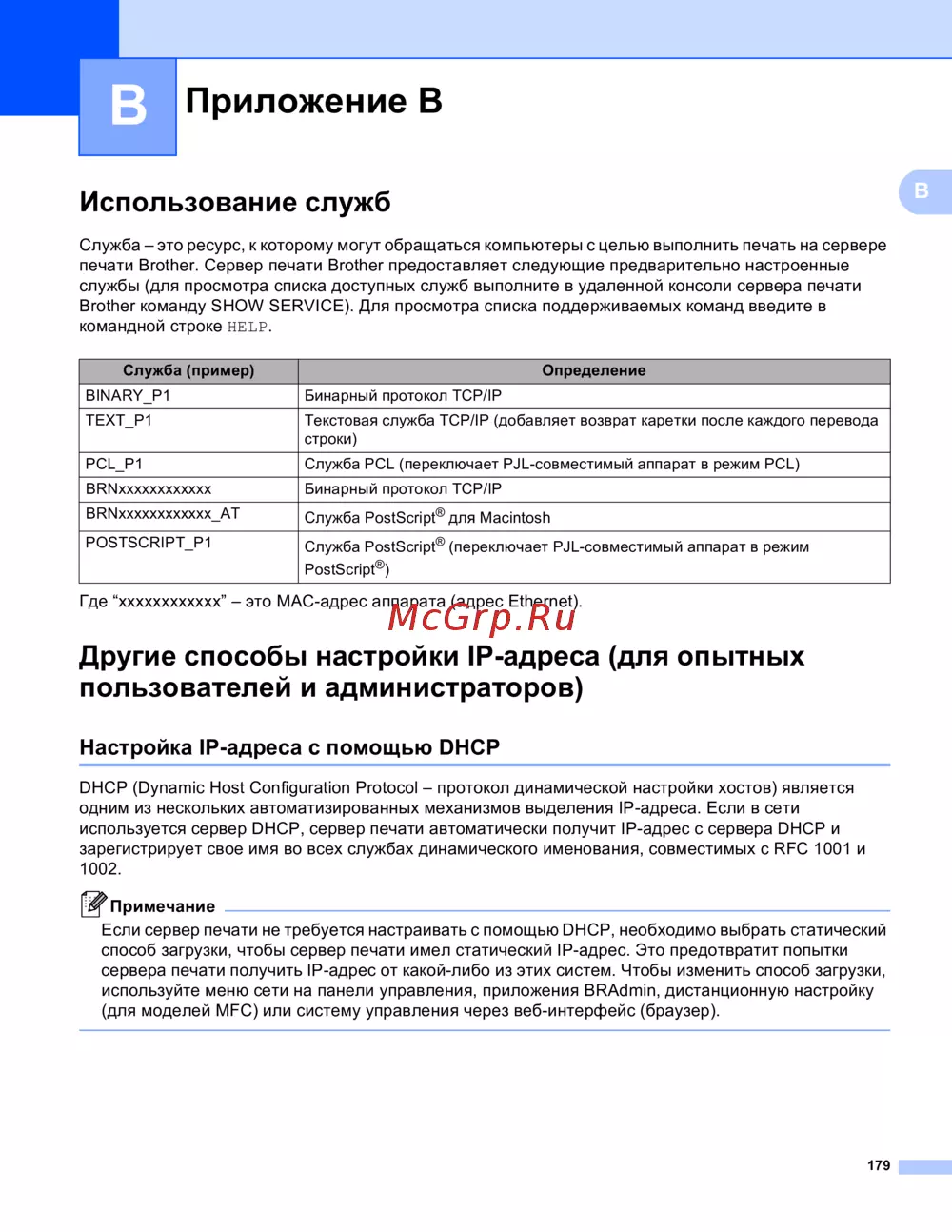 Brother DCP-8250DN — настройка служб печати и IP-адресов для серверов печати [186]