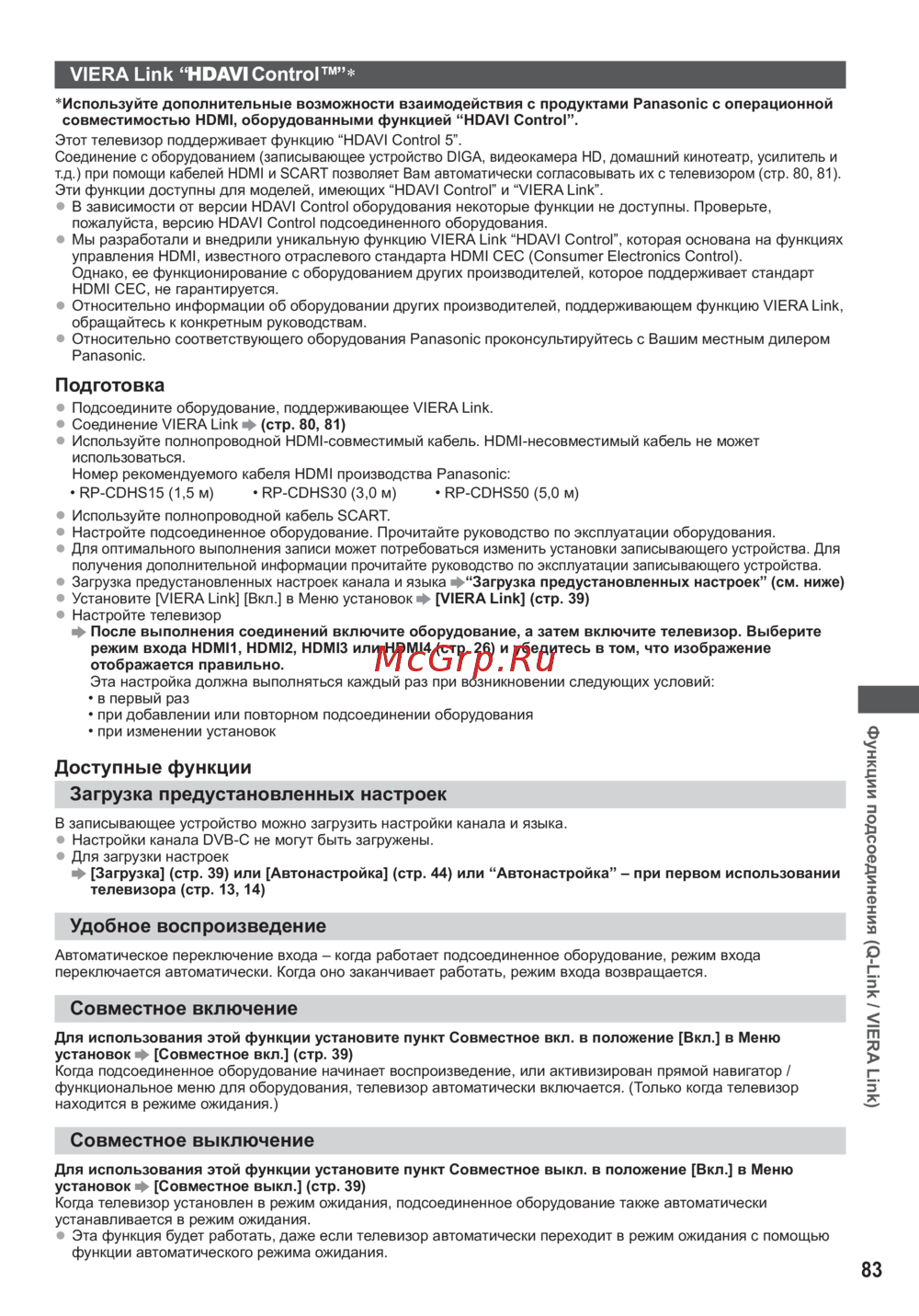Panasonic TX-PR42GT30_TX-PR50GT30 — подключение и управление устройствами через HDMI и VIERA Link [83]
