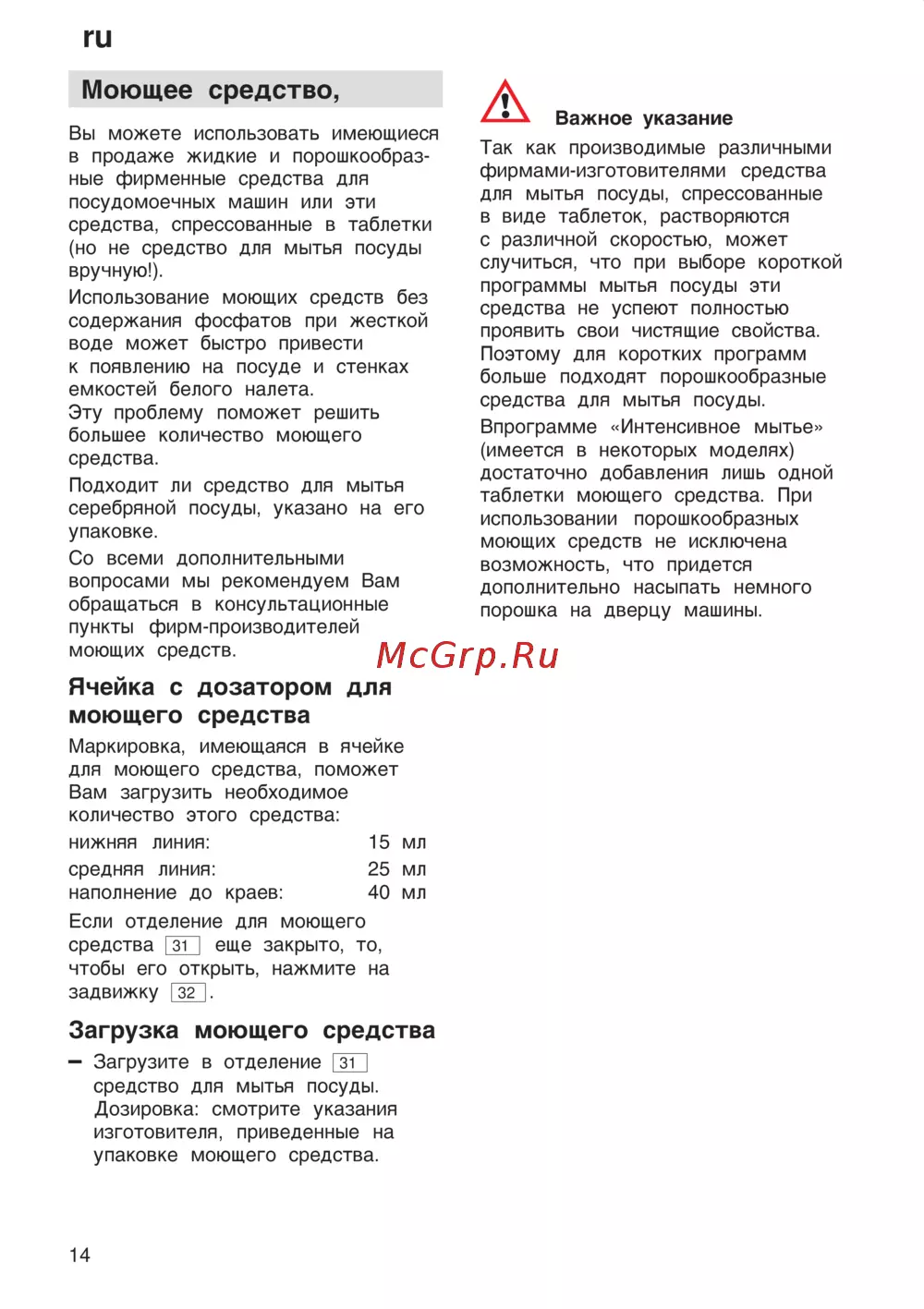 - Д внимание важная информация по использованию комбинированных моющих средств p.15