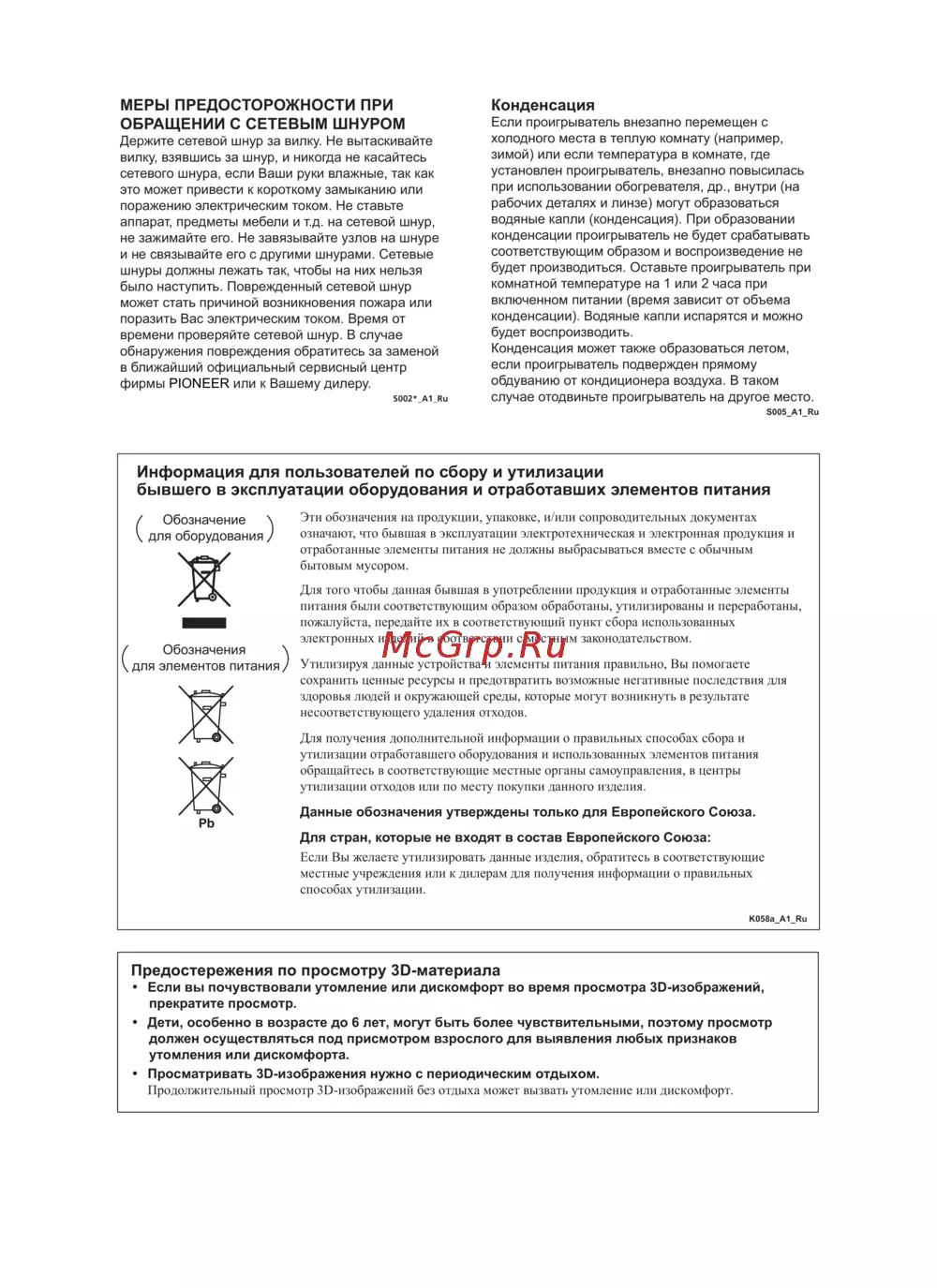 Pioneer BDP-LX88 — информация по утилизации электрооборудования и элементов питания [3/68]