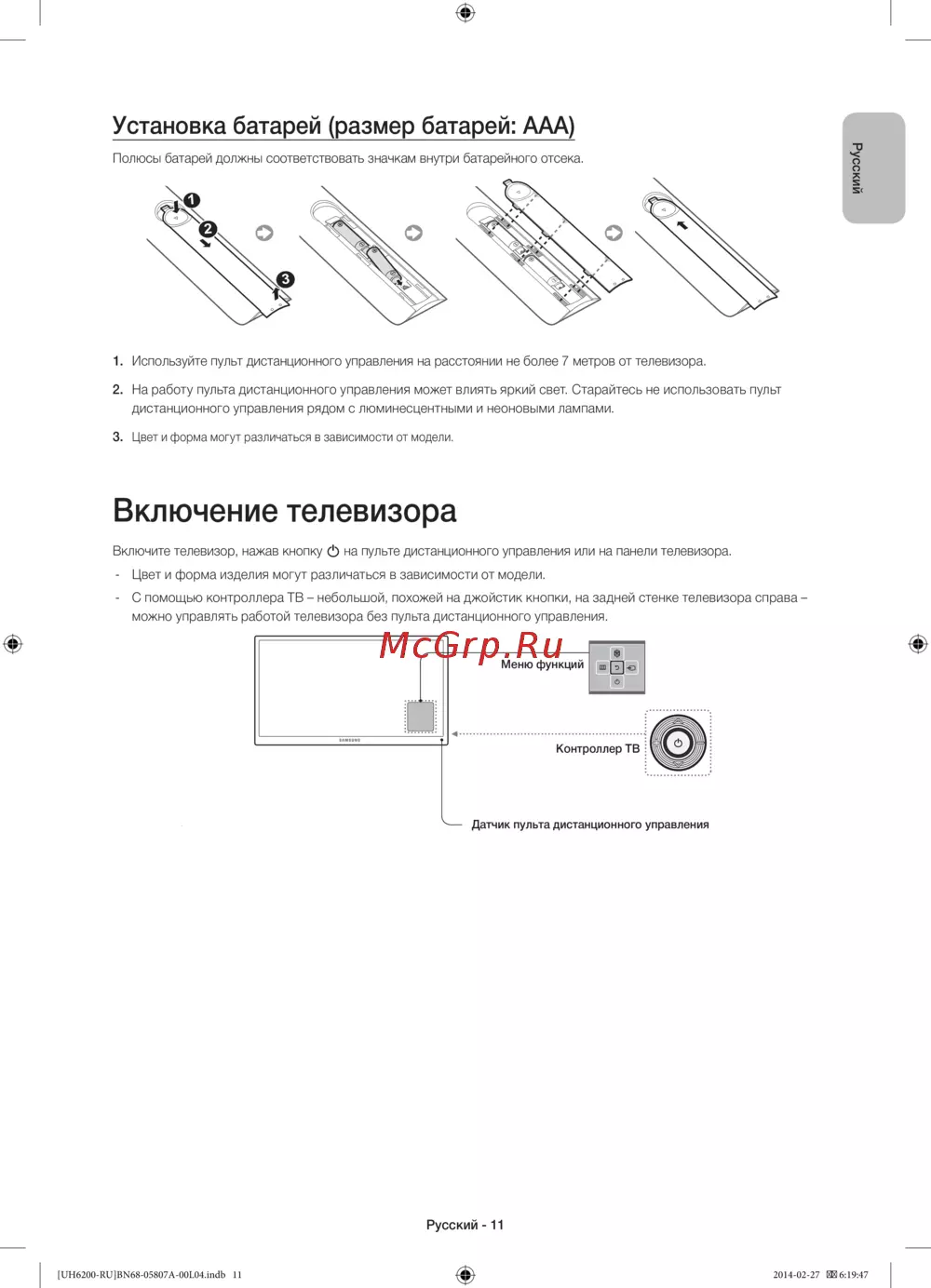 - Установка батарей размер батарей aaa p.11