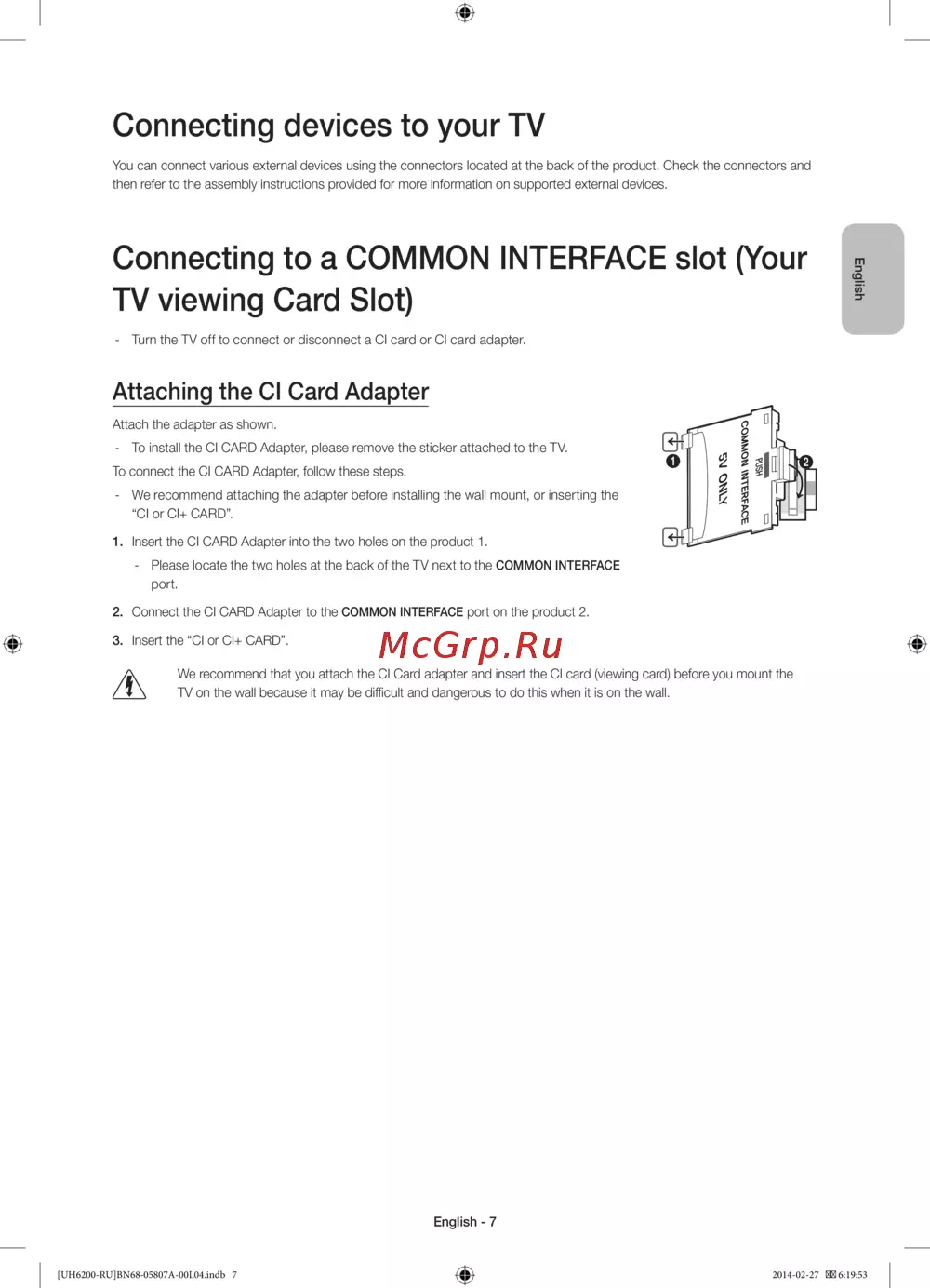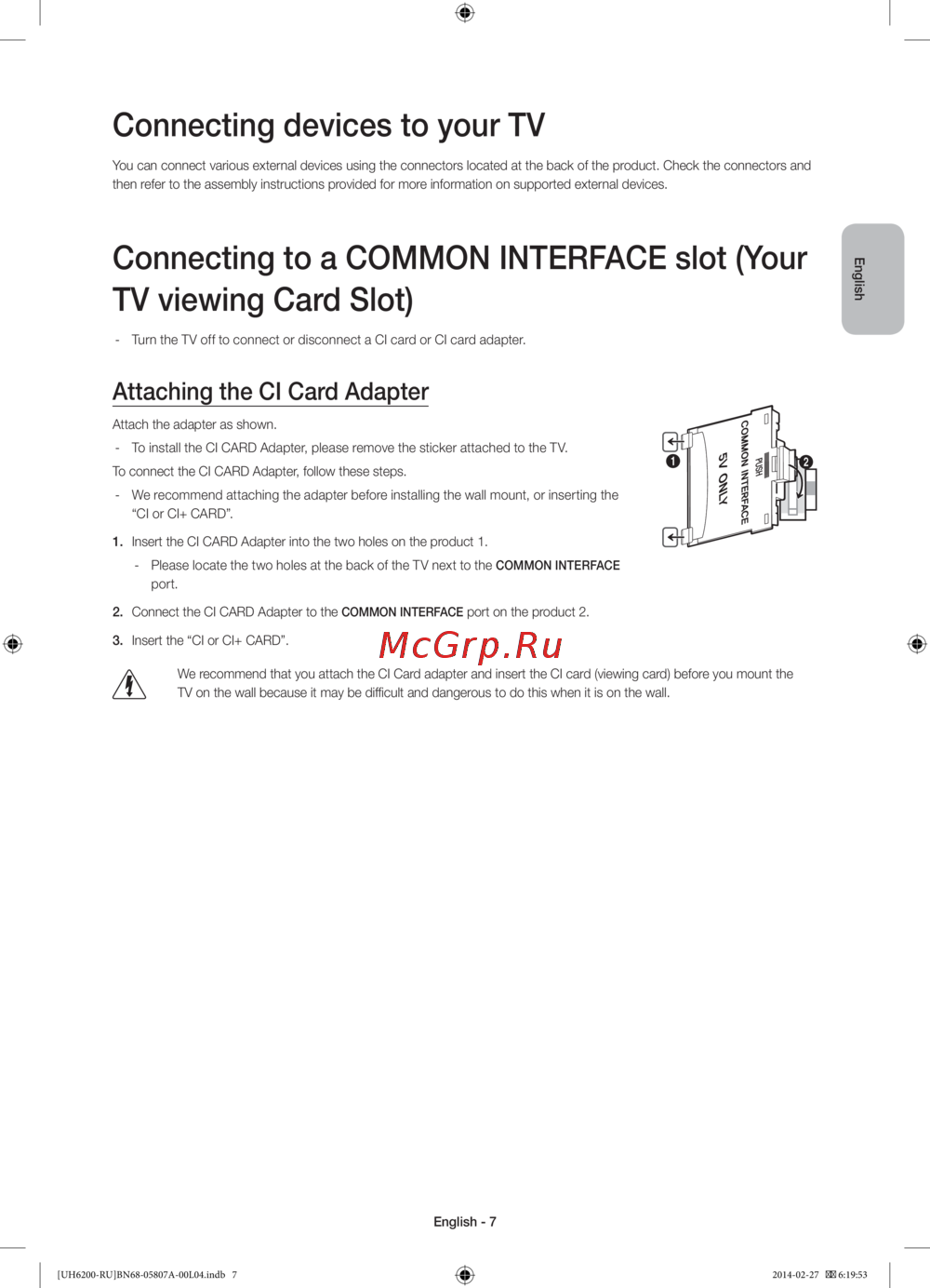 - Подсоединение адаптера карты ci card p.7