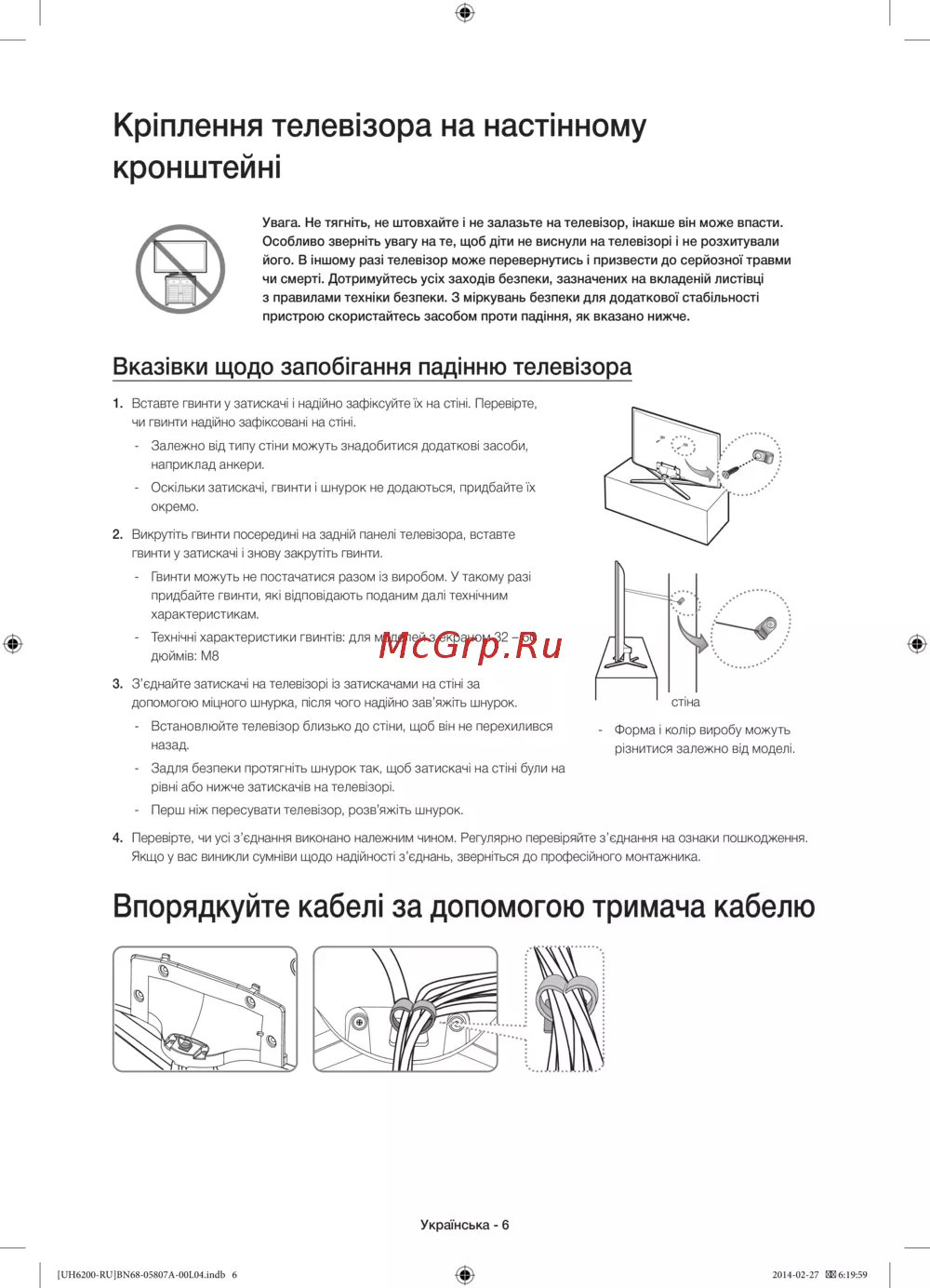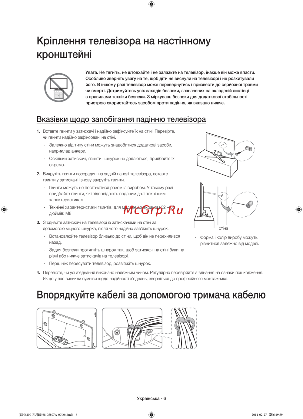 - Крепление телевизора к стене p.6