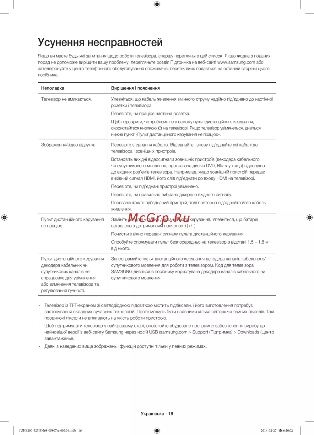 порад не допоможе вирішити вашу проблему, перегляньте розділ Підтримка на веб-сайті www.samsung.com або