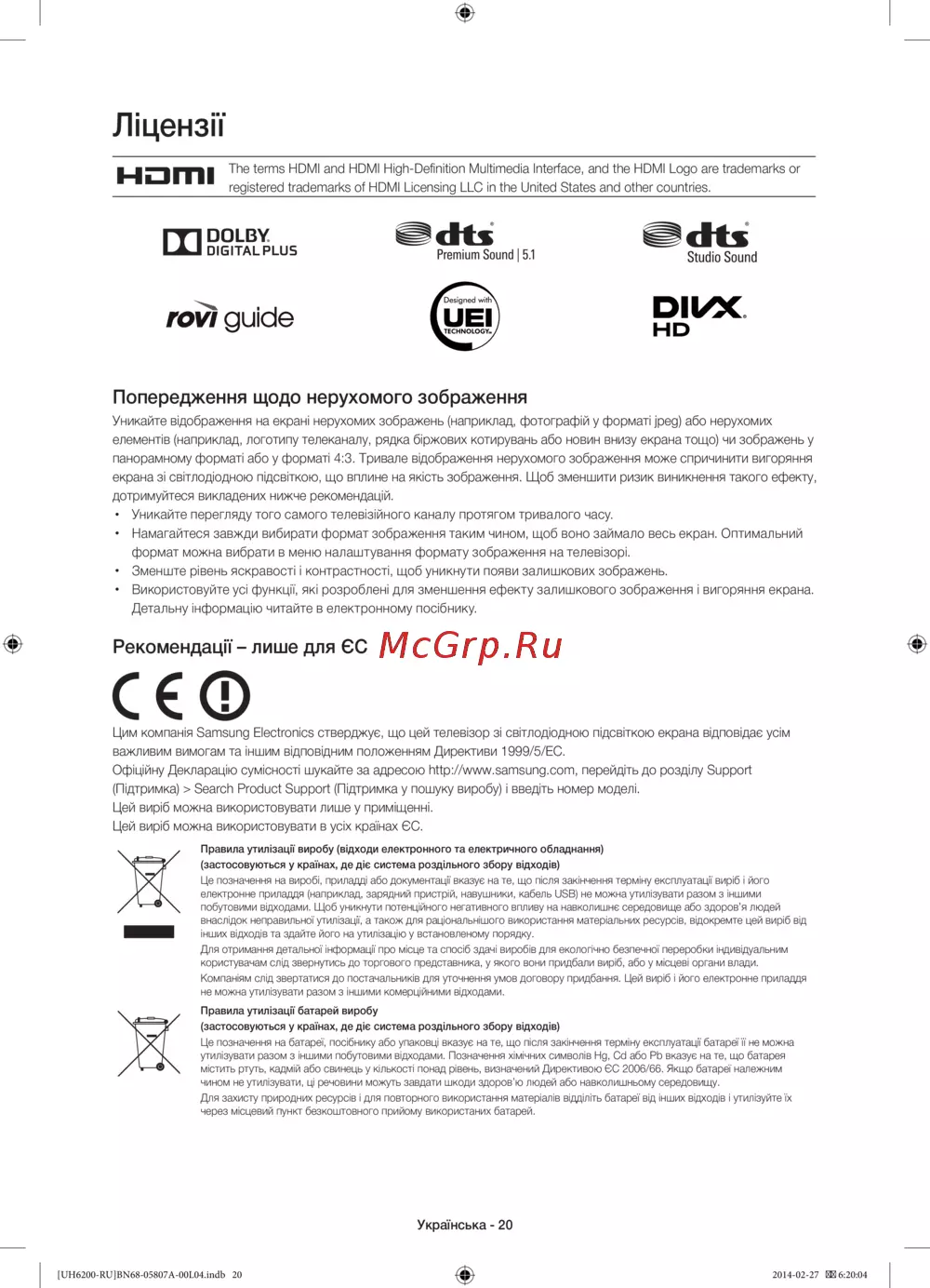 Samsung UE32H6200AK [62/83] Рекомендації лише для єс