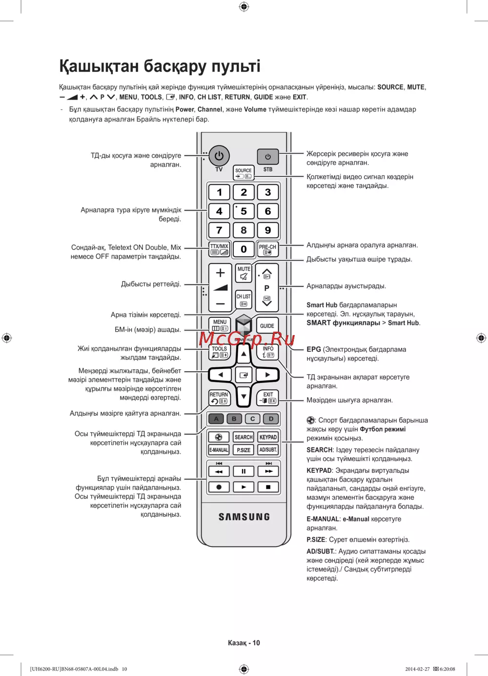 Samsung UE32H6200AK [72/83] Қашықтан басқару пульті