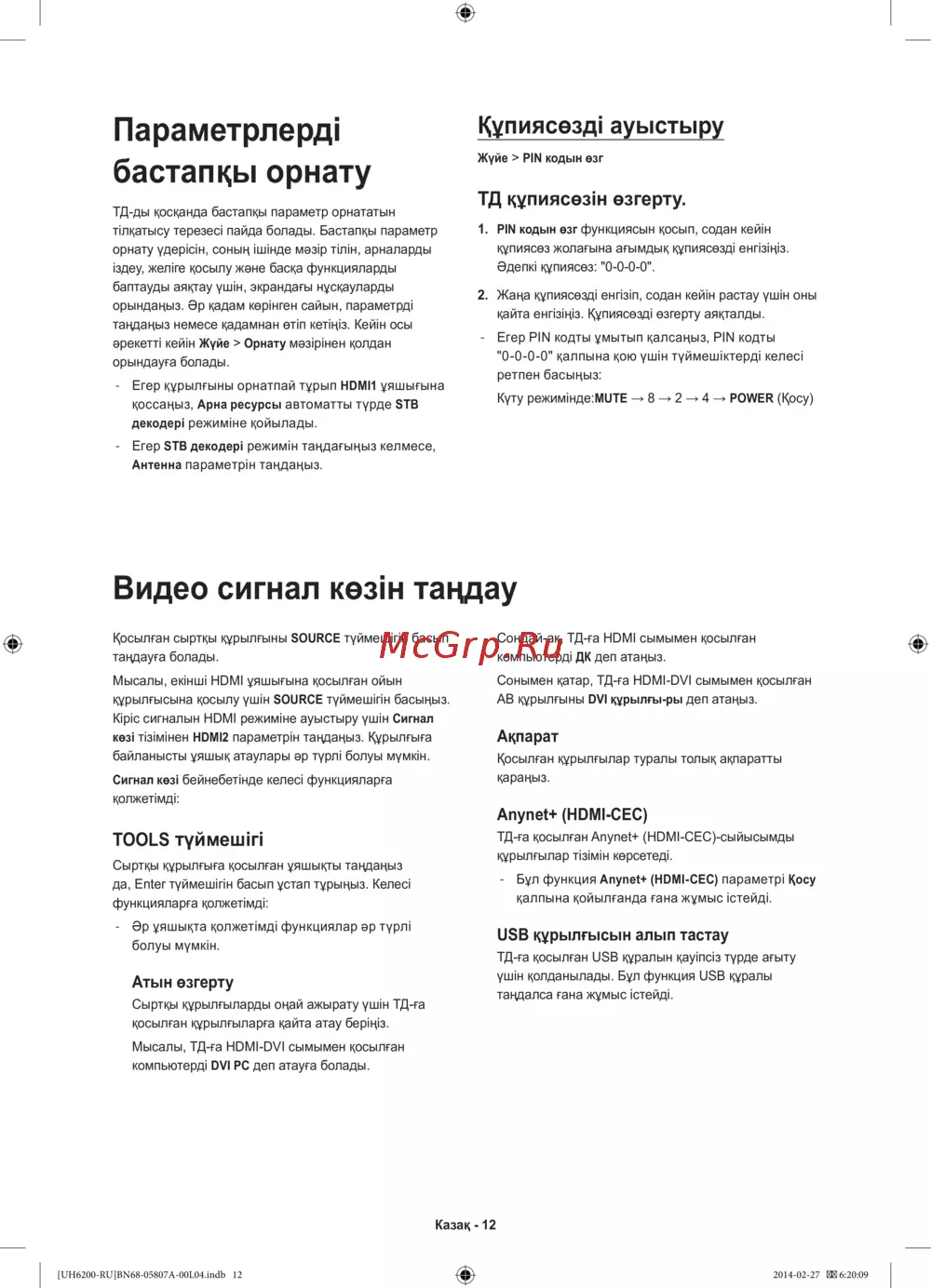 - Сыртқы құрылғыларды тд дың қашықтан басқару пультімен басқару p.75