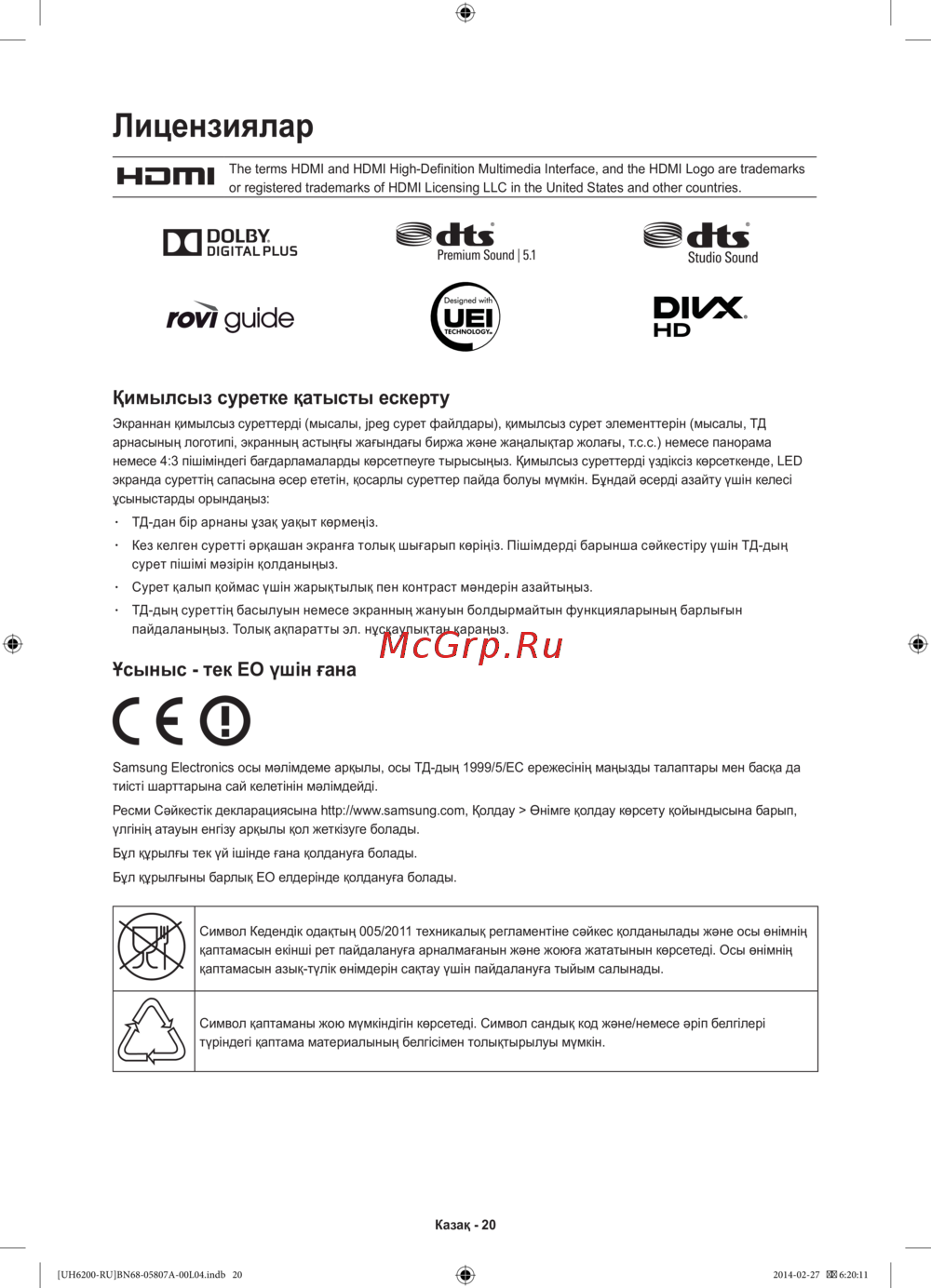 Samsung UE32H6200AK [82/83] Ұсыныс тек ео үшін ғана