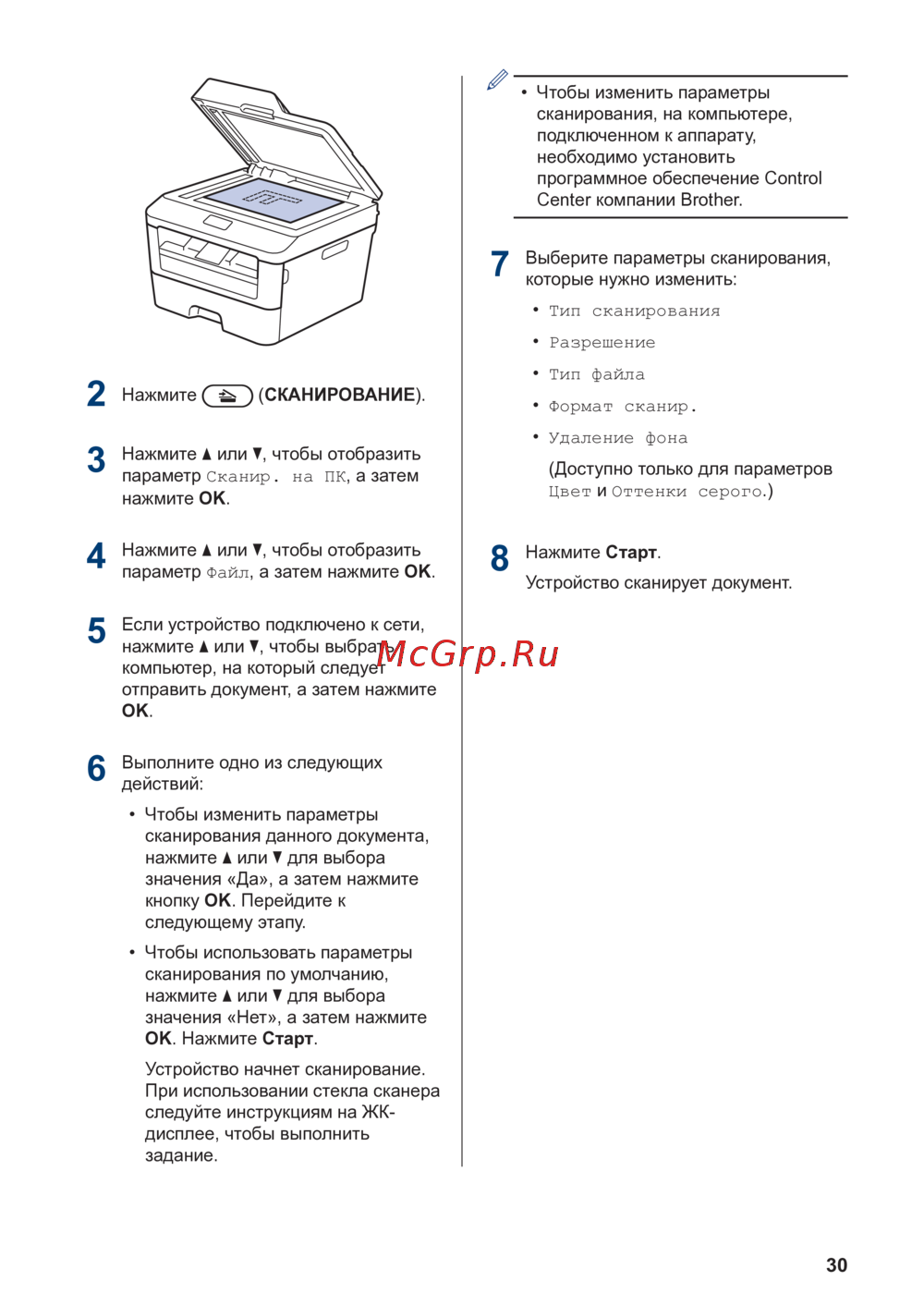 - Сканирование с помощью кнопки сканирования на устройстве brother p.41