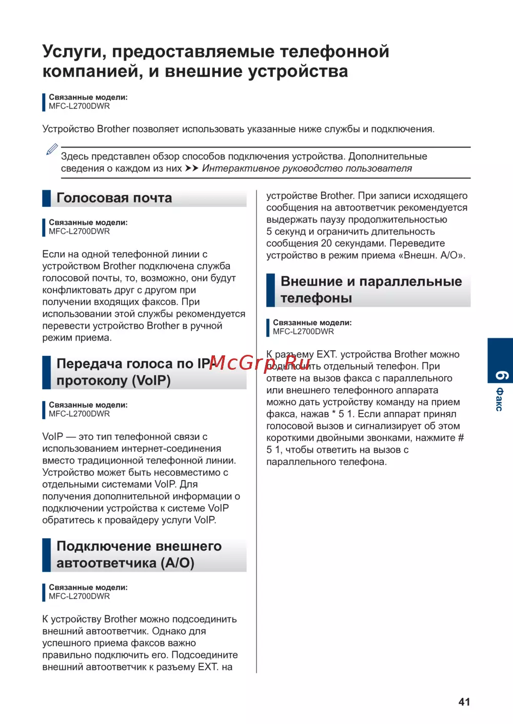 Brother MFC-L2700DWR — обзор услуг телефонной связи и подключения устройств [53/82]