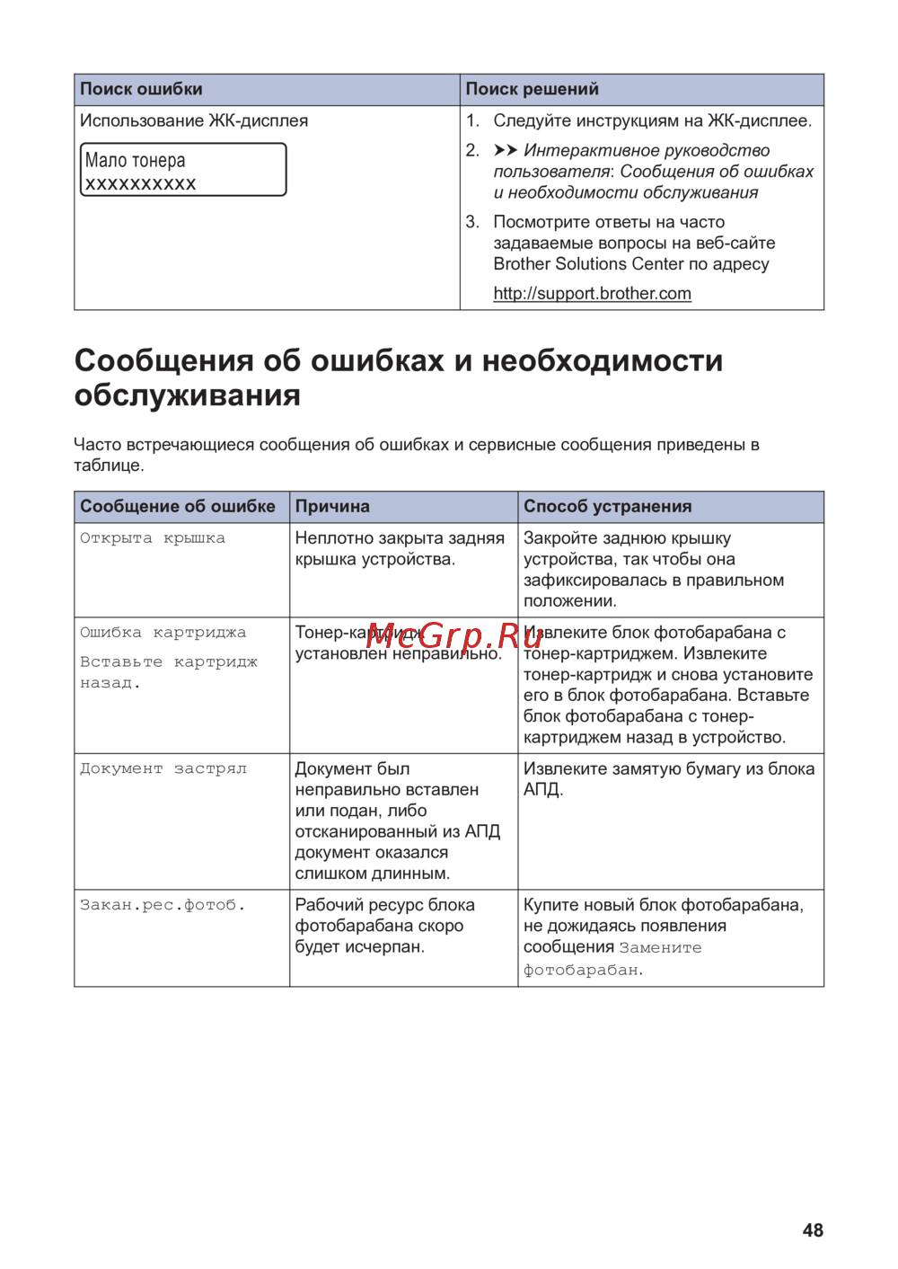 Brother MFC-L2700DWR [60/82] Сообщения об ошибках и необходимости обслуживания