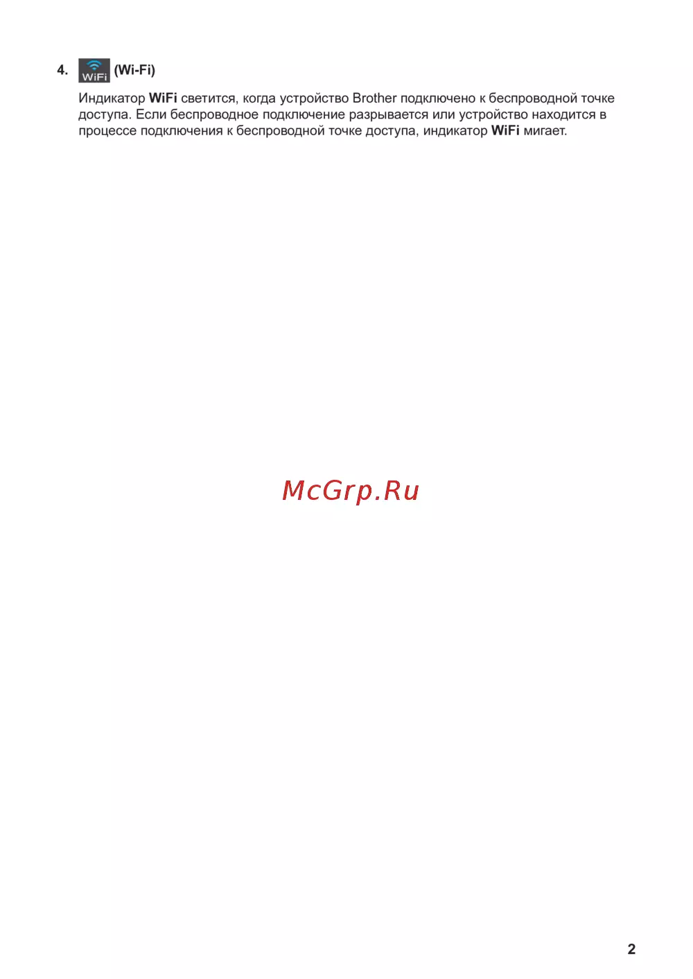Индикатор WiFi светится, когда устройство Brother подключено к беспроводной точке