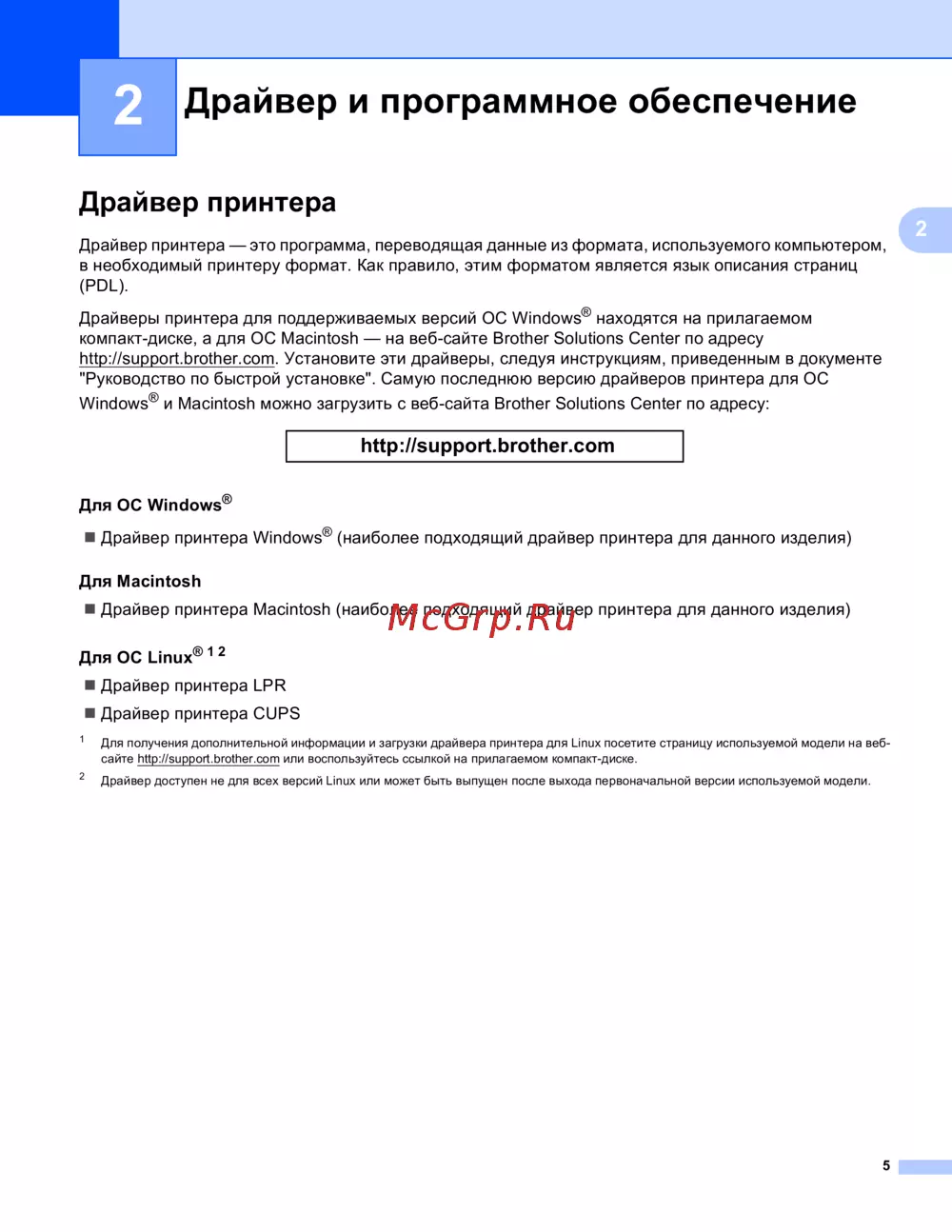 http://support.brother.com. Установите эти драйверы, следуя инструкциям, приведенным в документе