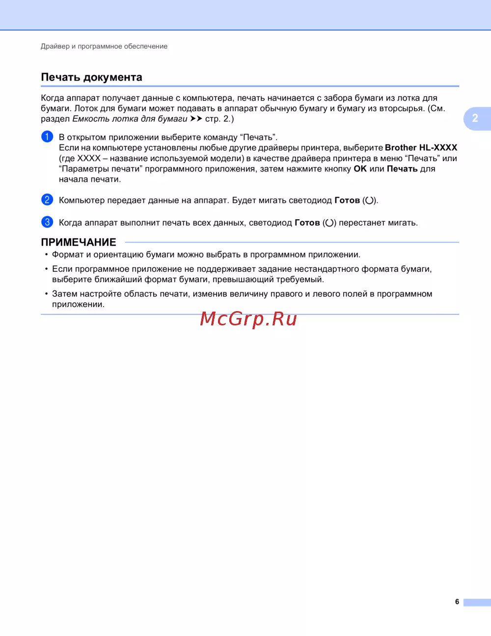 - Для правильного выполнения печати необходимо выбирать в программном приложении тот же формат бумаги что и формат бумаги в лотке p.10