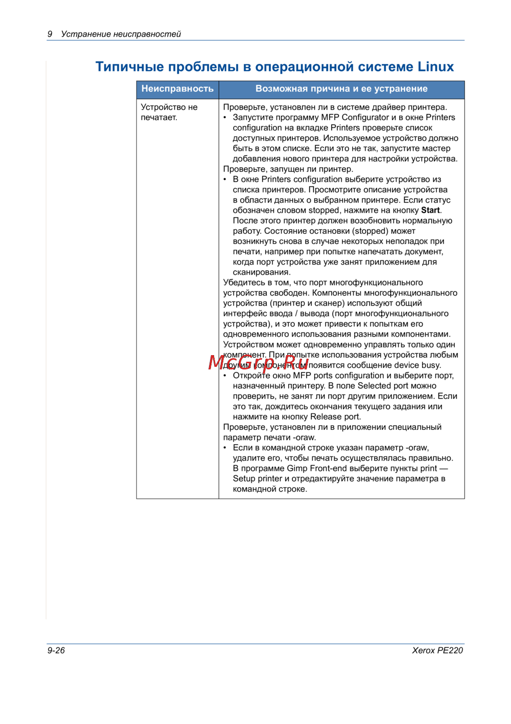 Xerox WORKCENTRE PE220 [196/216] Типичные проблемы в операционной системе linux