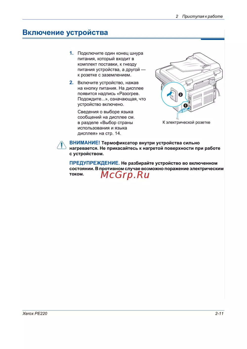 Xerox WORKCENTRE PE220 — инструкция по включению и безопасной эксплуатации устройства [43/216]