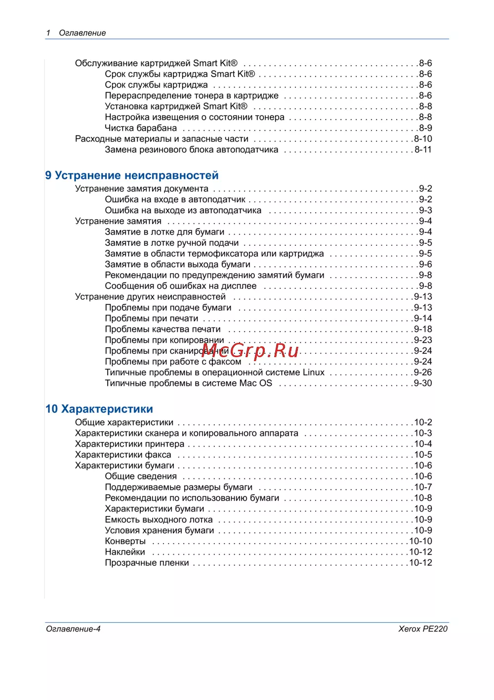 Устранение замятия документа . . . . . . . . . . . . . . . . . . . . . . . . . . . . . . . . . . . . . . . . .9-2