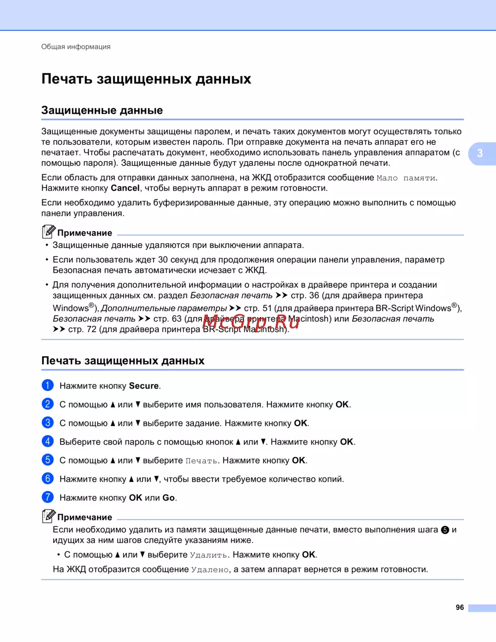 помощью пароля). Защищенные данные будут удалены после однократной печати.