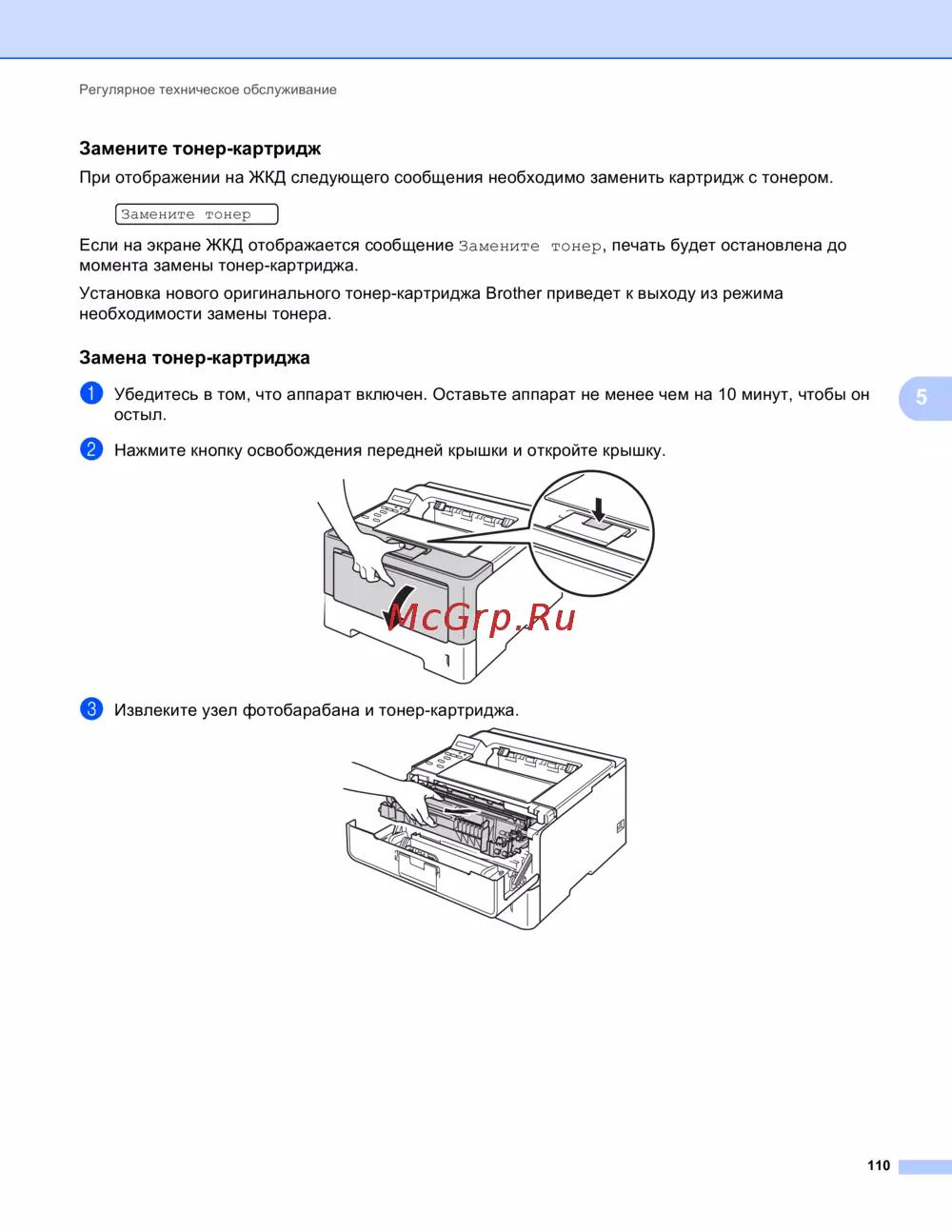 Установка нового оригинального тонер-картриджа Brother приведет к выходу из режима