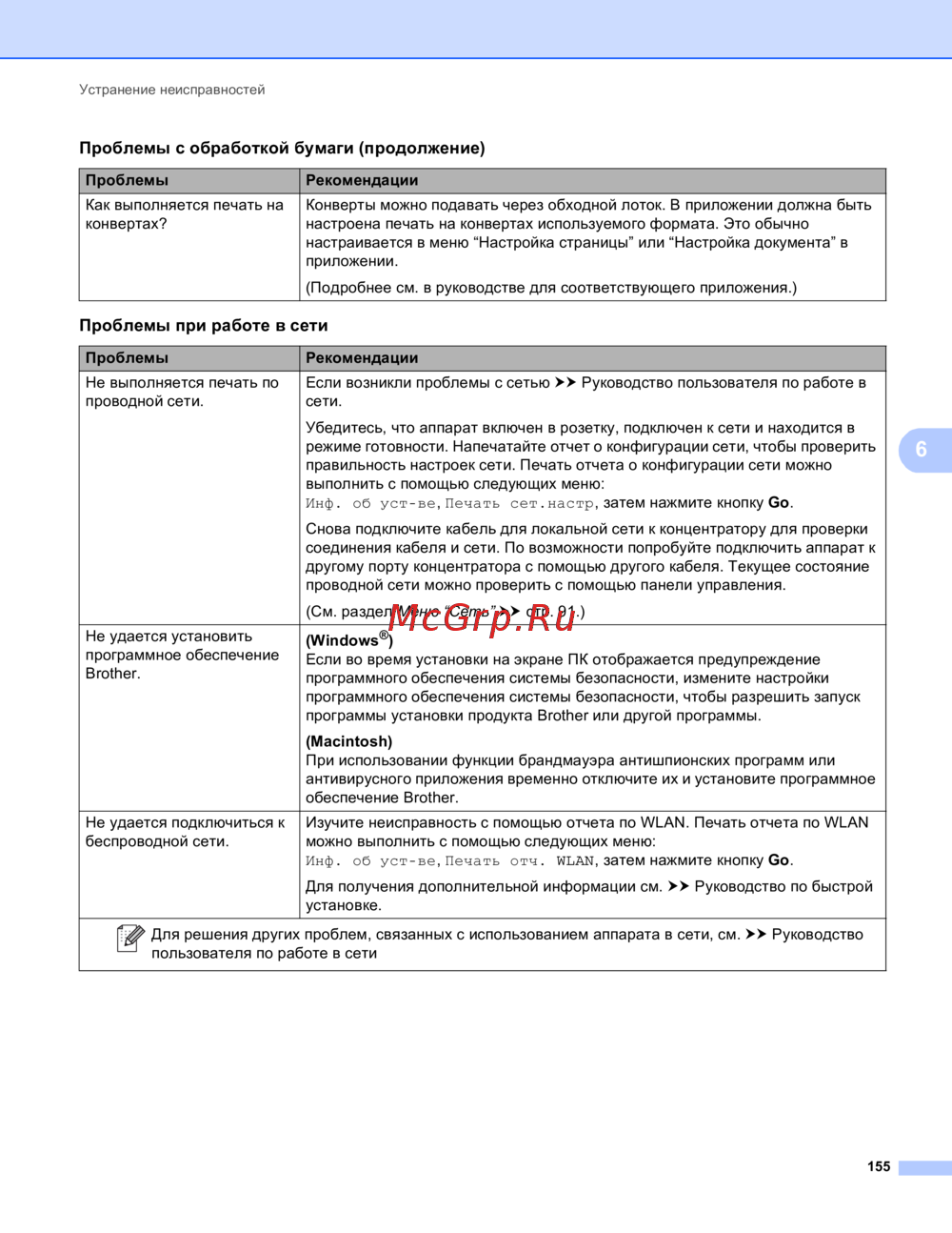 Brother HL-6180DW — устранение неисправностей при печати на конвертах и в сети [161/183]