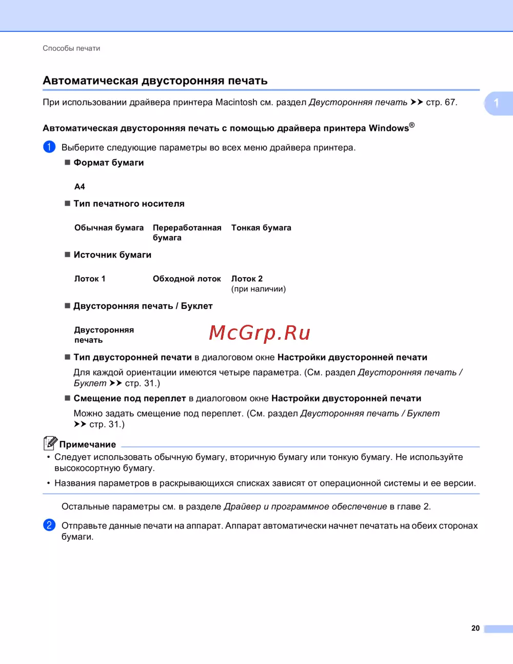 Brother HL-6180DW [26/183] Автоматическая двусторонняя печать