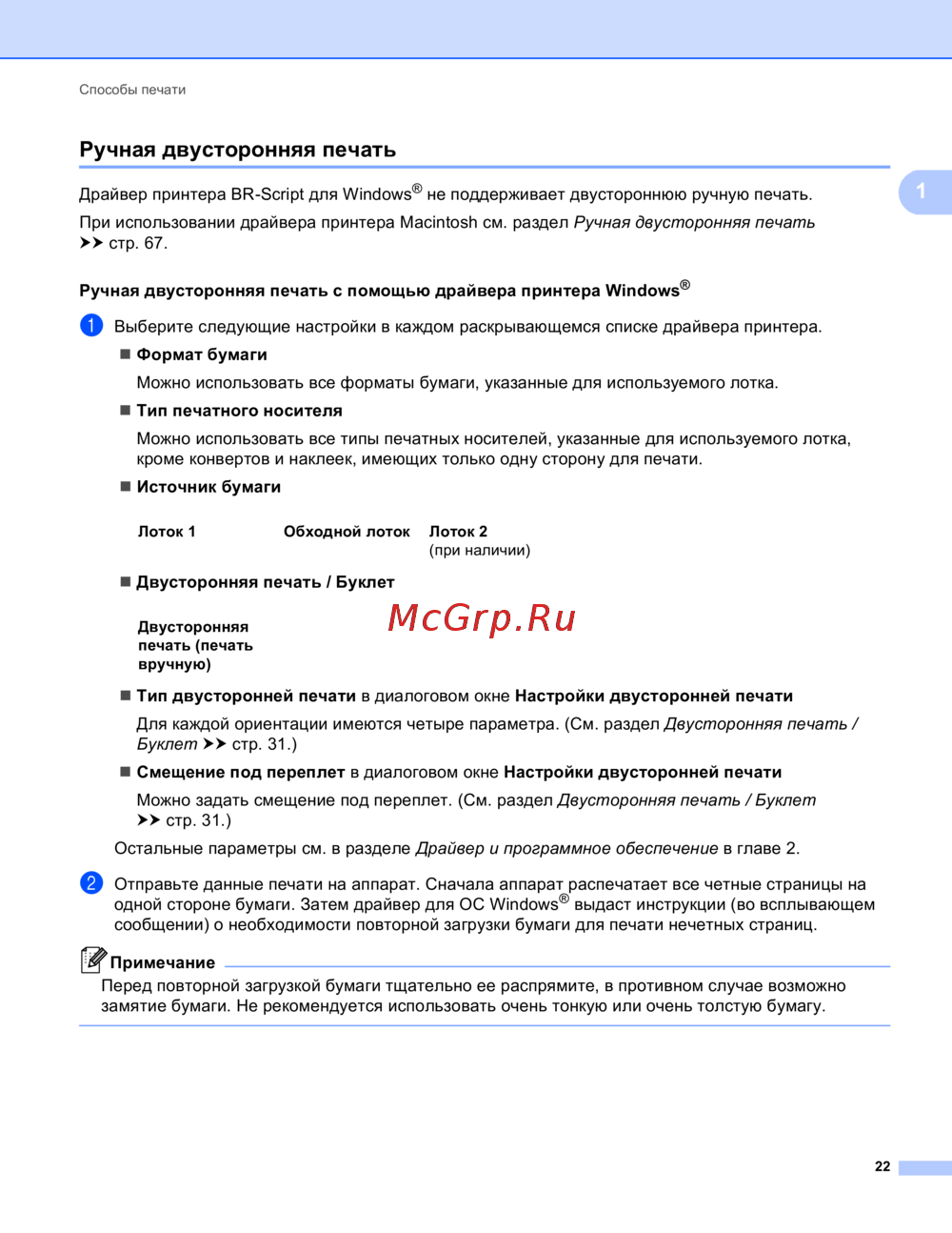 При использовании драйвера принтера Macintosh см. раздел Ручная двусторонняя печать