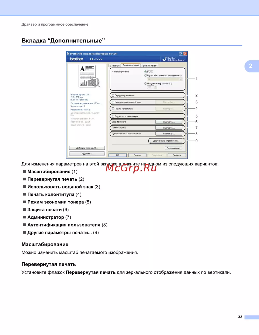 - Остальные параметры см в разделе драйвер и программное обеспечение в главе 2 p.18