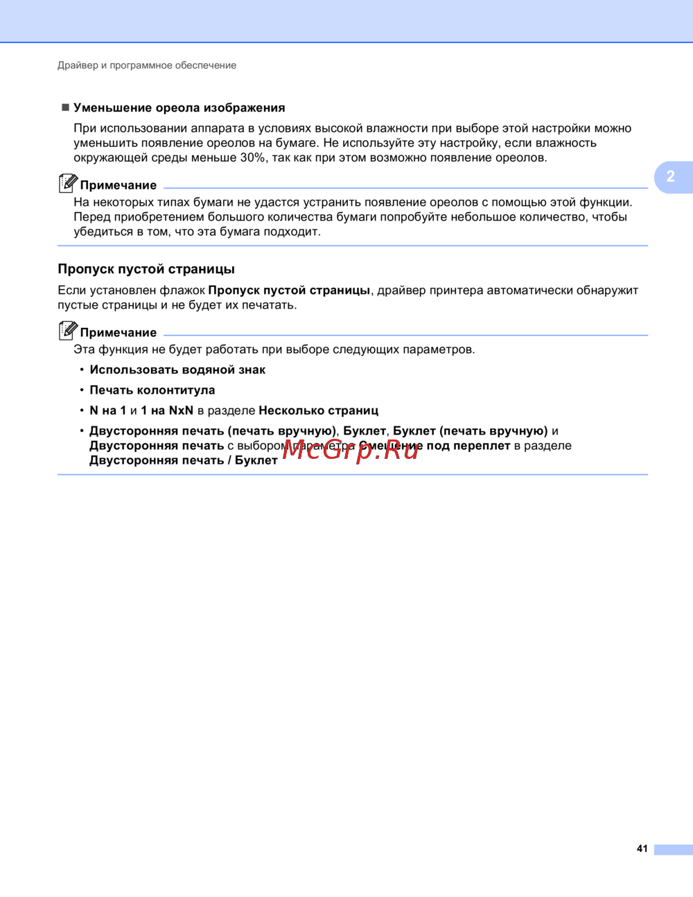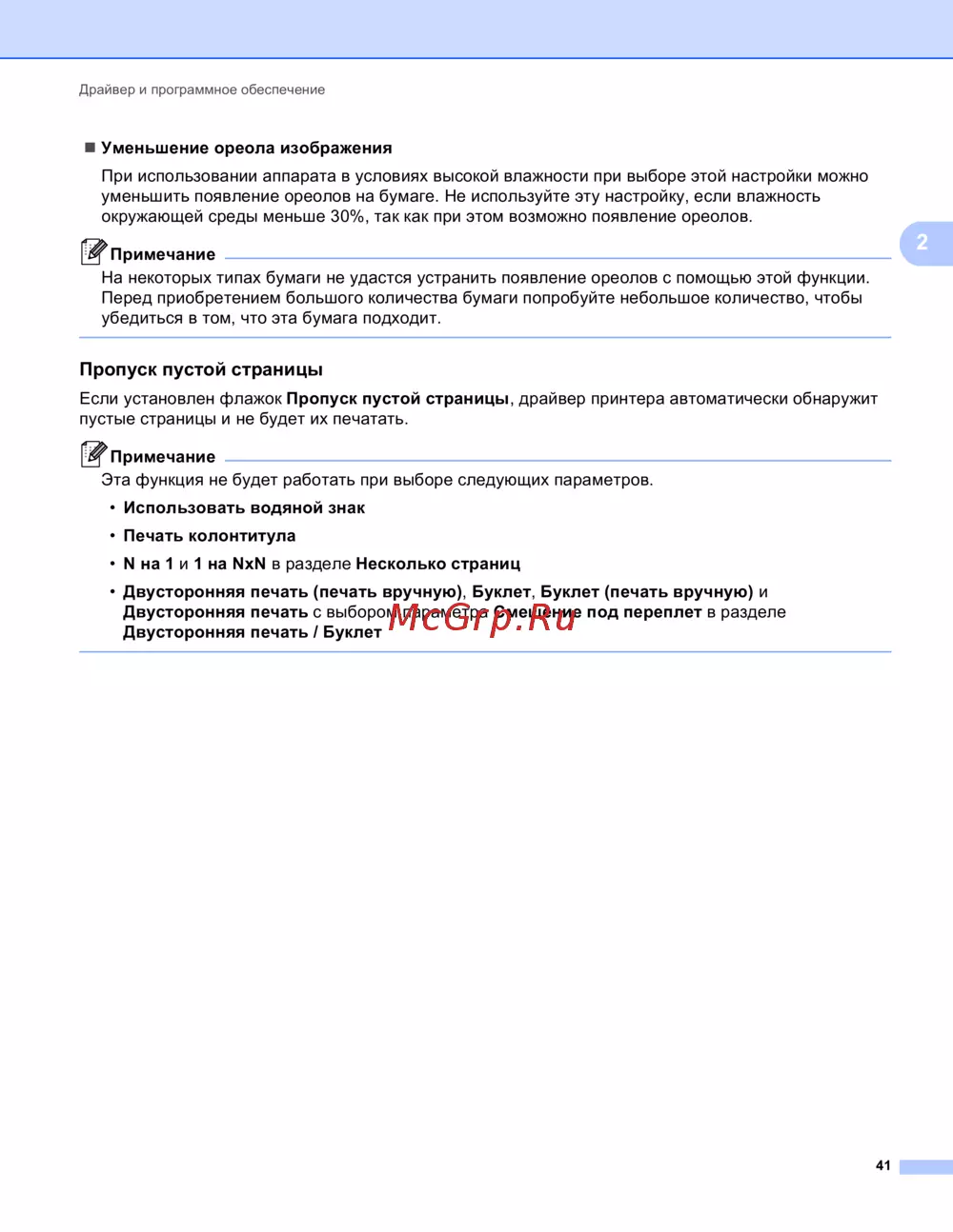 уменьшить появление ореолов на бумаге. Не используйте эту настройку, если влажность