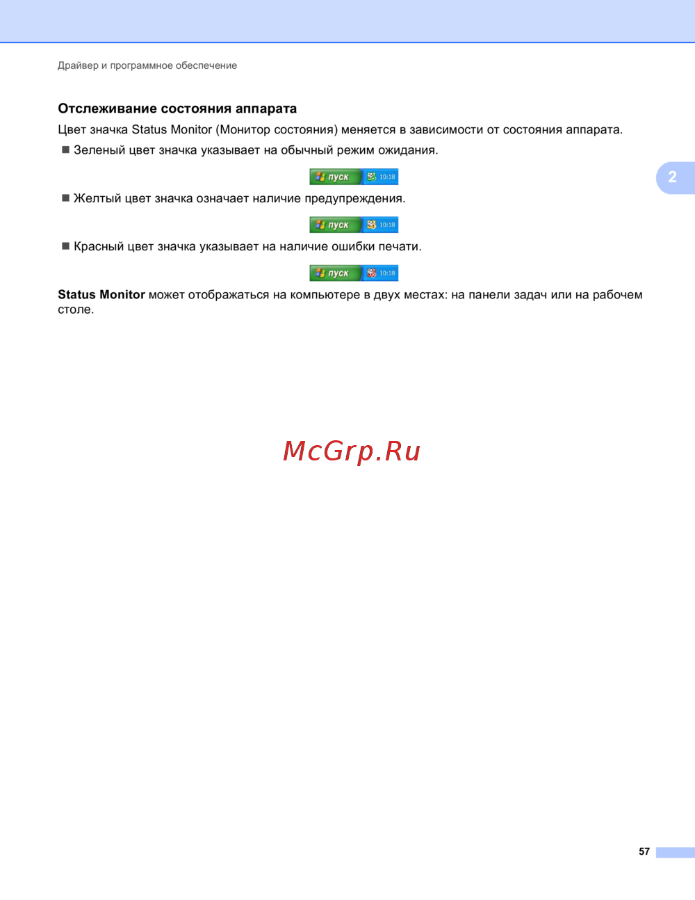 Status Monitor может отображаться на компьютере в двух местах: на панели задач или на рабочем