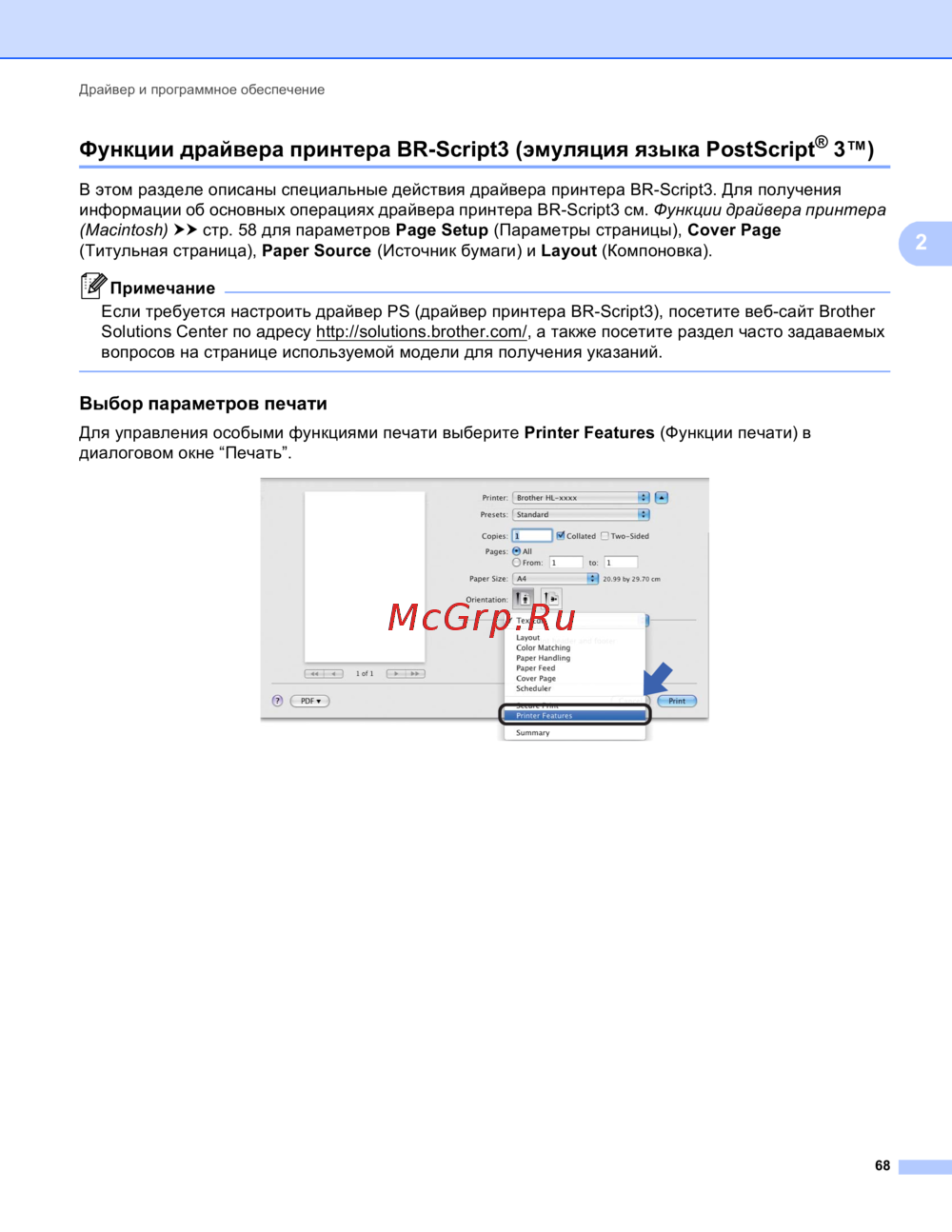 Функции драйвера принтера BR-Script3 (эмуляция языка PostScript