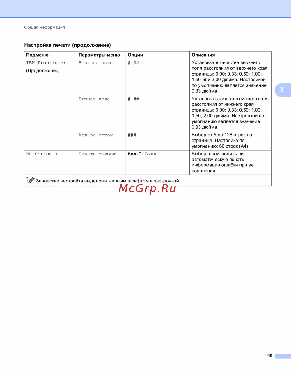 - При использовании эмуляции br script3 величина непечатной зоны по краям бумаги составляет 4 23 мм p.14