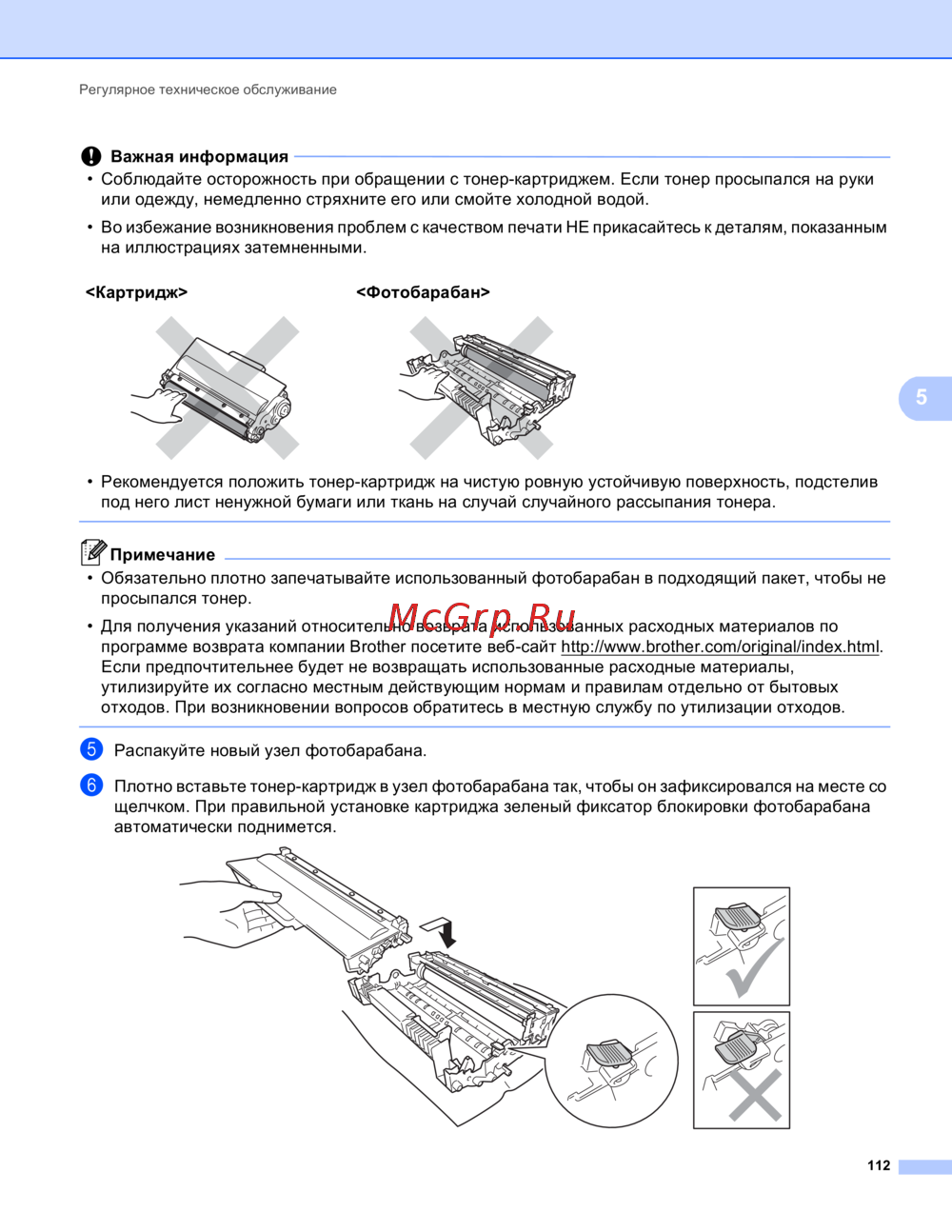 Brother HL-5450DN — регулярное техническое обслуживание и утилизация тонера [118/172]